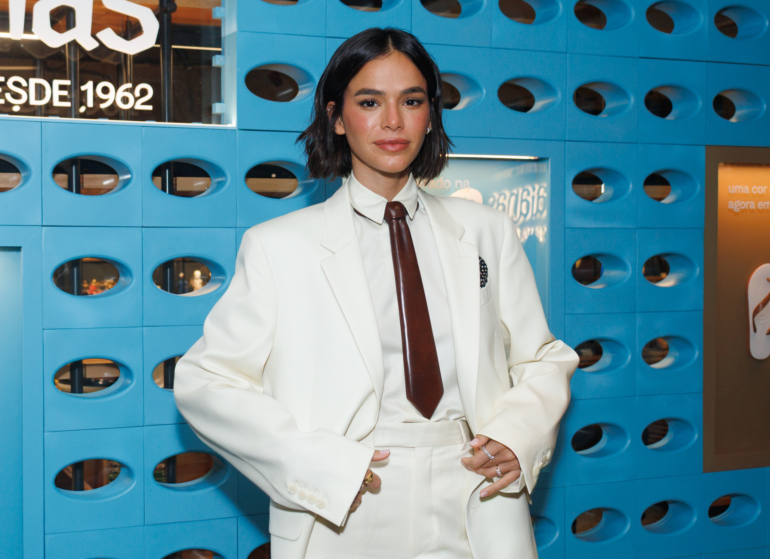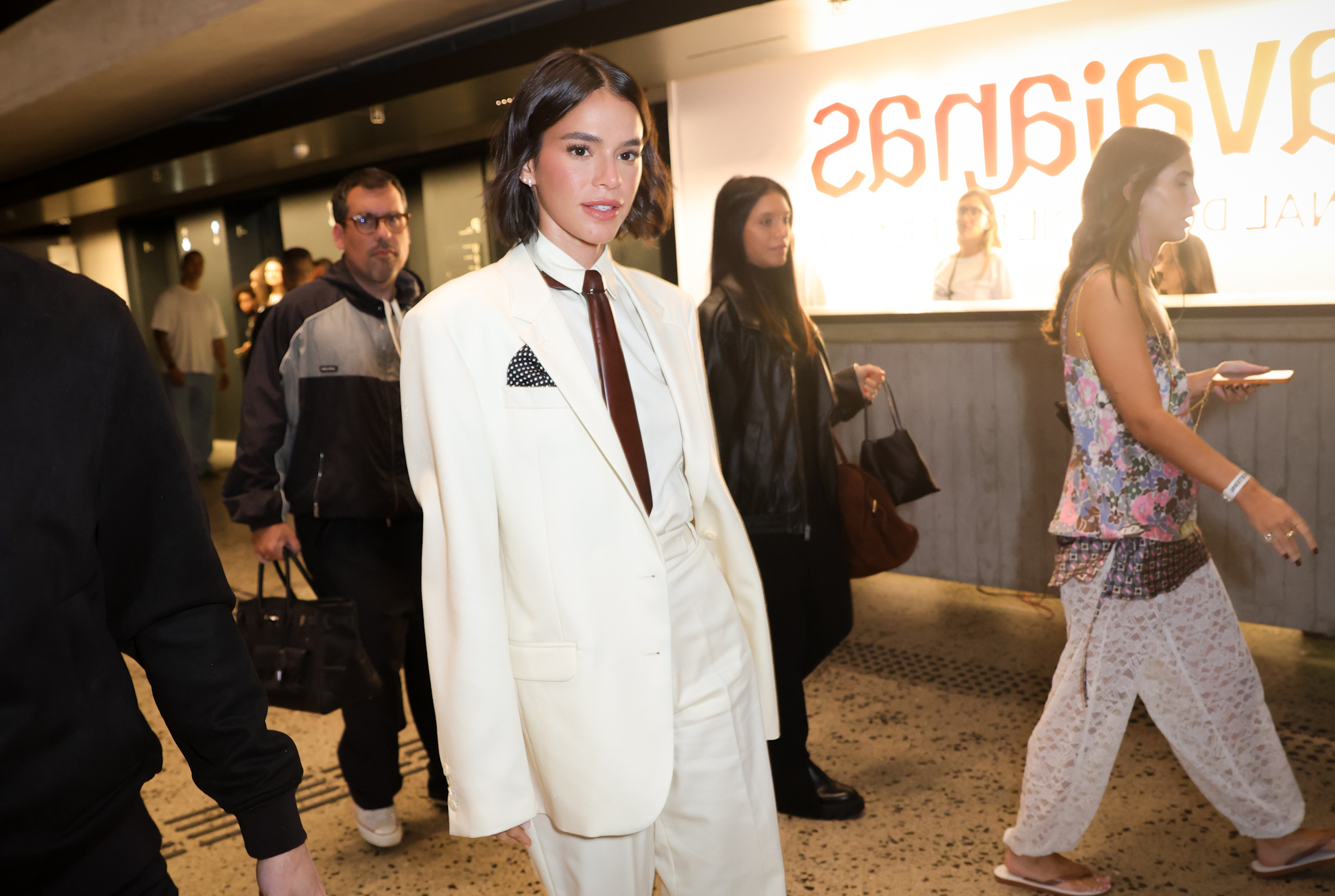 Entre os convidados, Bruna Marquezine chamou atenção ao surgir com cabelos curtos e um visual elegante composto por terno branco e gravata marrom. A atriz também posou para registros ao lado de Sasha Meneghel e do cantor João Lucas, que acompanharam o evento juntos.