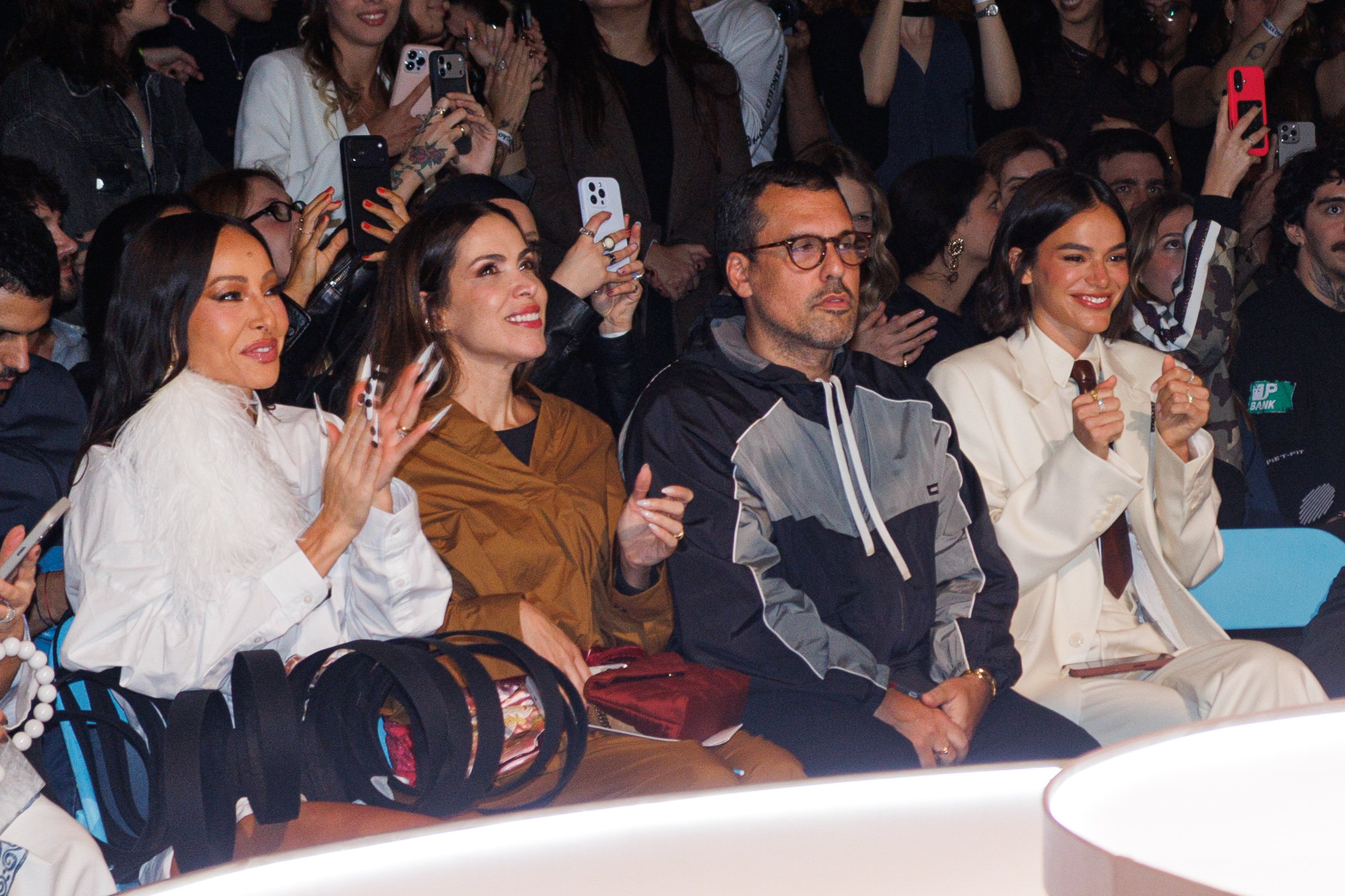 O desfile reuniu ainda nomes ligados à moda, música e comunicação, como Rael, Giulia Costa, Walério Araújo, Gloria Kalil, Camila Coutinho, Ju Ferraz e Catarina Tourinho, que acompanharam de perto a apresentação da coleção.