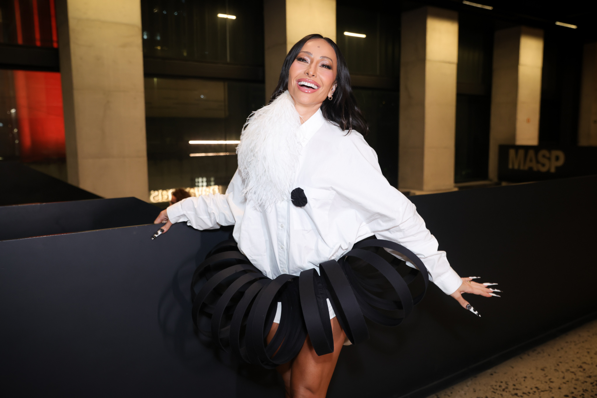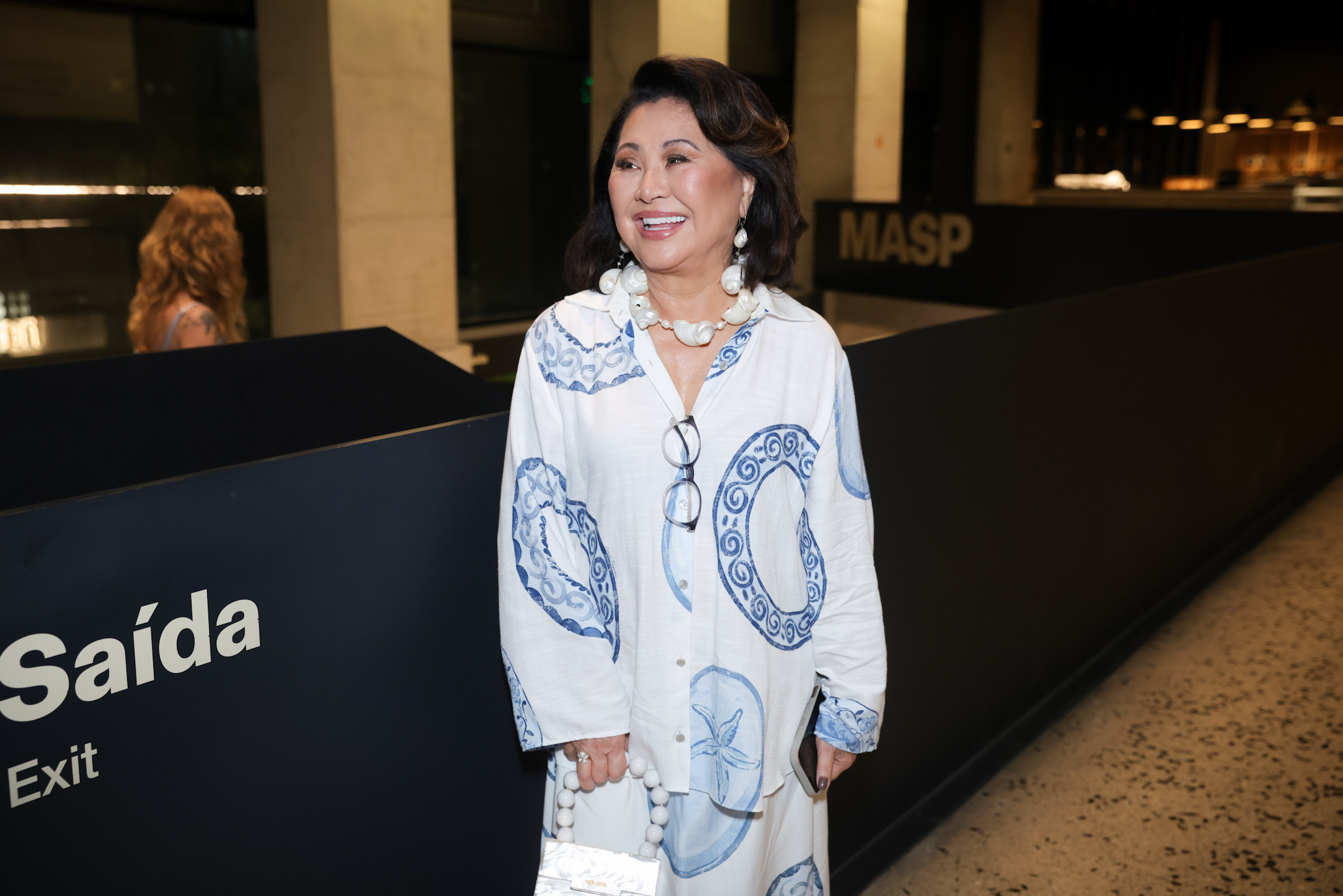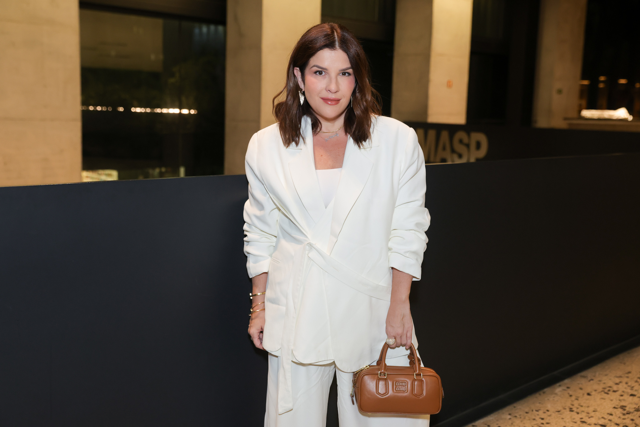 Já Sabrina Sato apostou em um look de estética futurista, com saia estruturada em círculos combinada a uma camisa branca. A apresentadora circulou pelo Masp acompanhada da mãe, Dona Kika, que também marcou presença na noite.