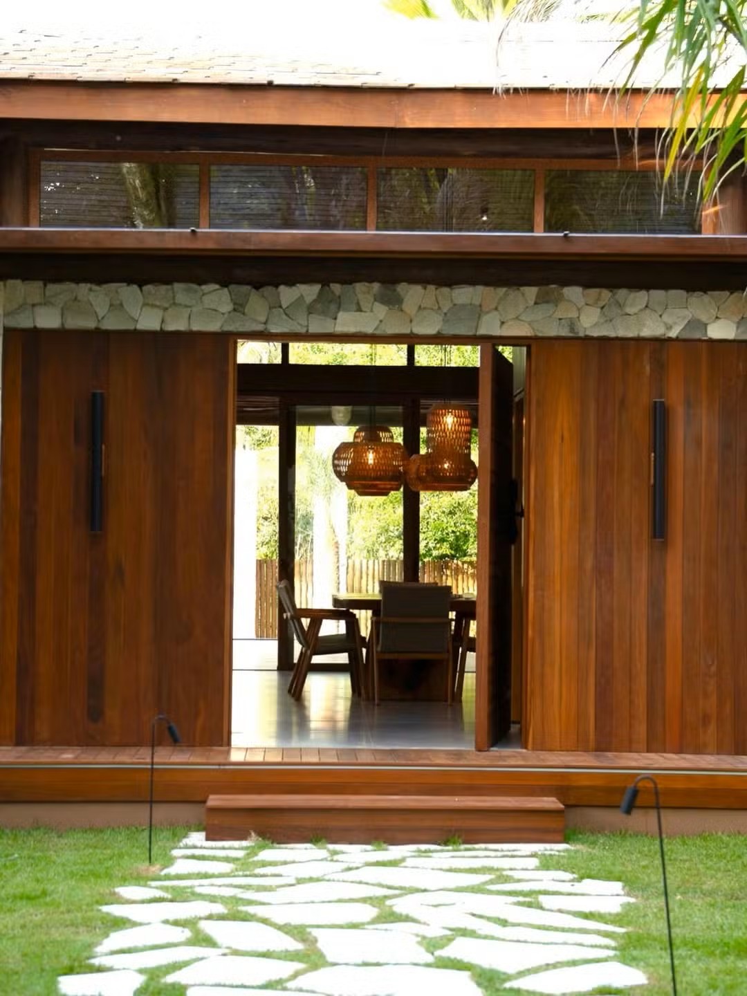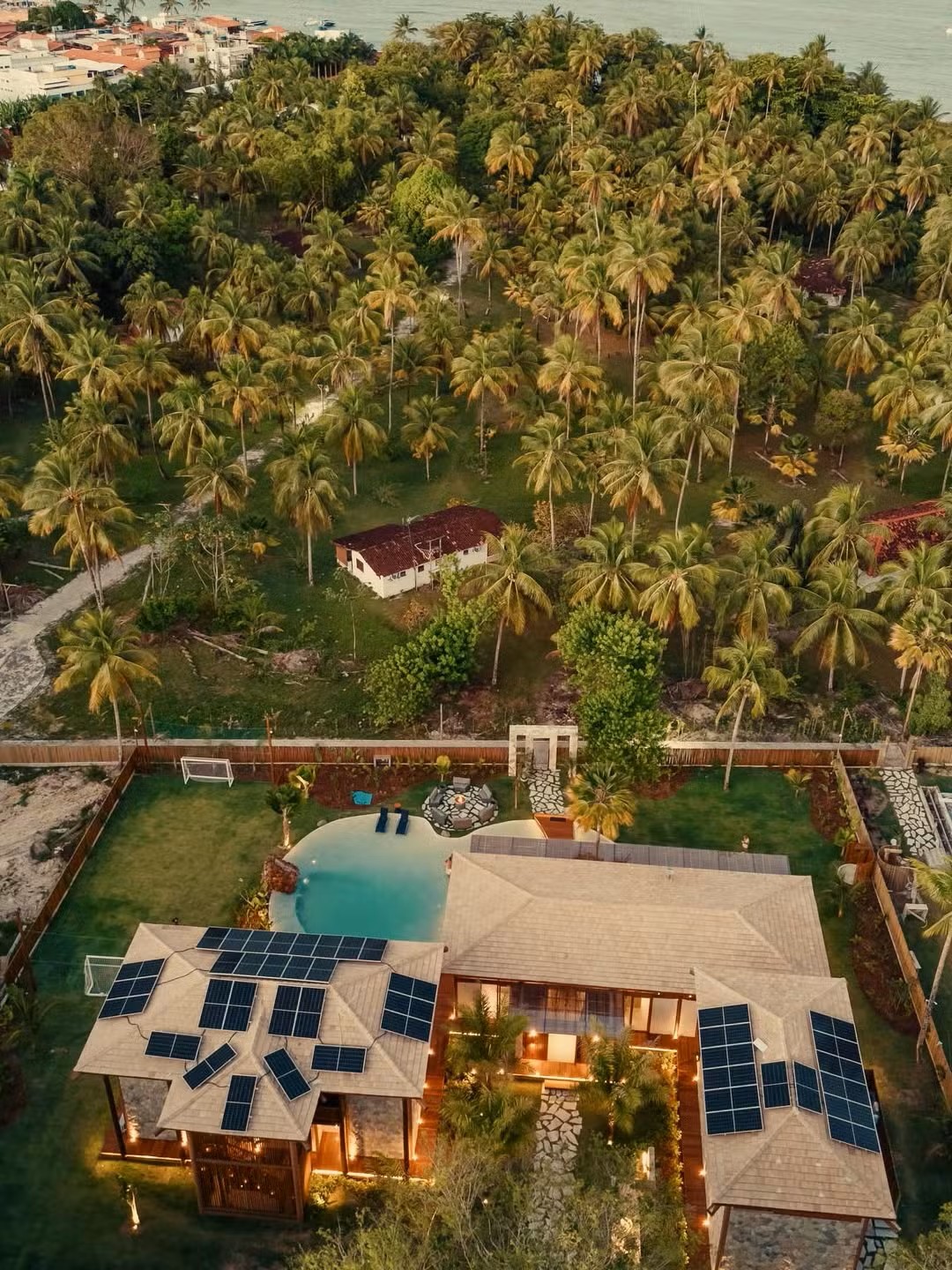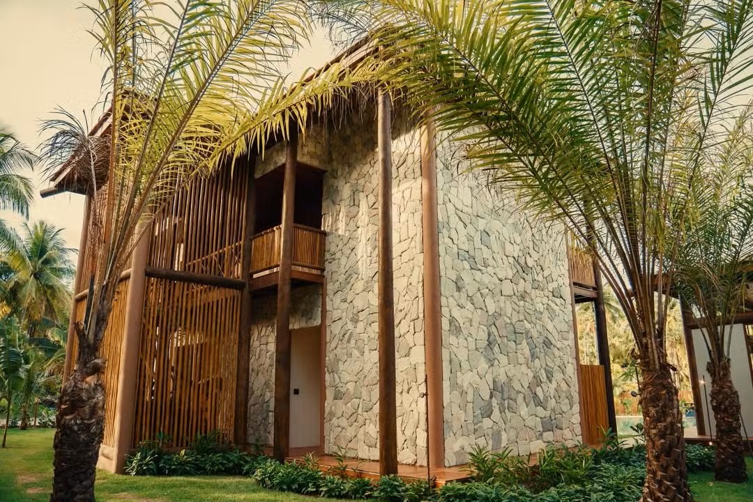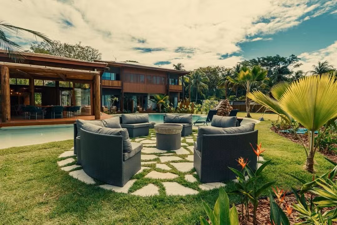 A Mansão Real, posicionada a poucos metros do mar, foi concebida para atender viajantes que buscam conforto premium, privacidade e estética tropical contemporânea. Com oito suítes e capacidade para até 23 hóspedes, a casa se destaca no segmento de hospedagem de luxo na Bahia.