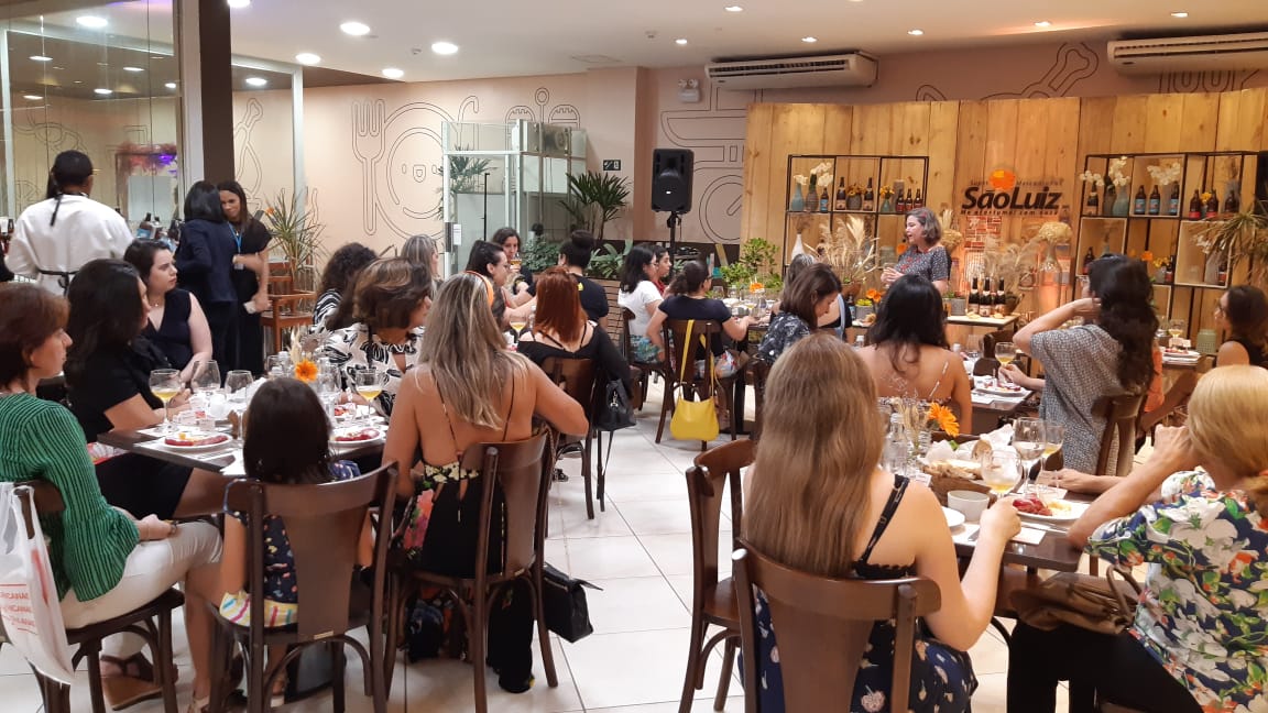 Por lá, a convidada falou para um grupo de mulheres sobre a história da cerveja, destacando que nos dias atuais é possível fazer a bebida em casa, e que harmonização é algo bem pessoal, levando em consideração as experiências sensoriais de cada indivíduo.