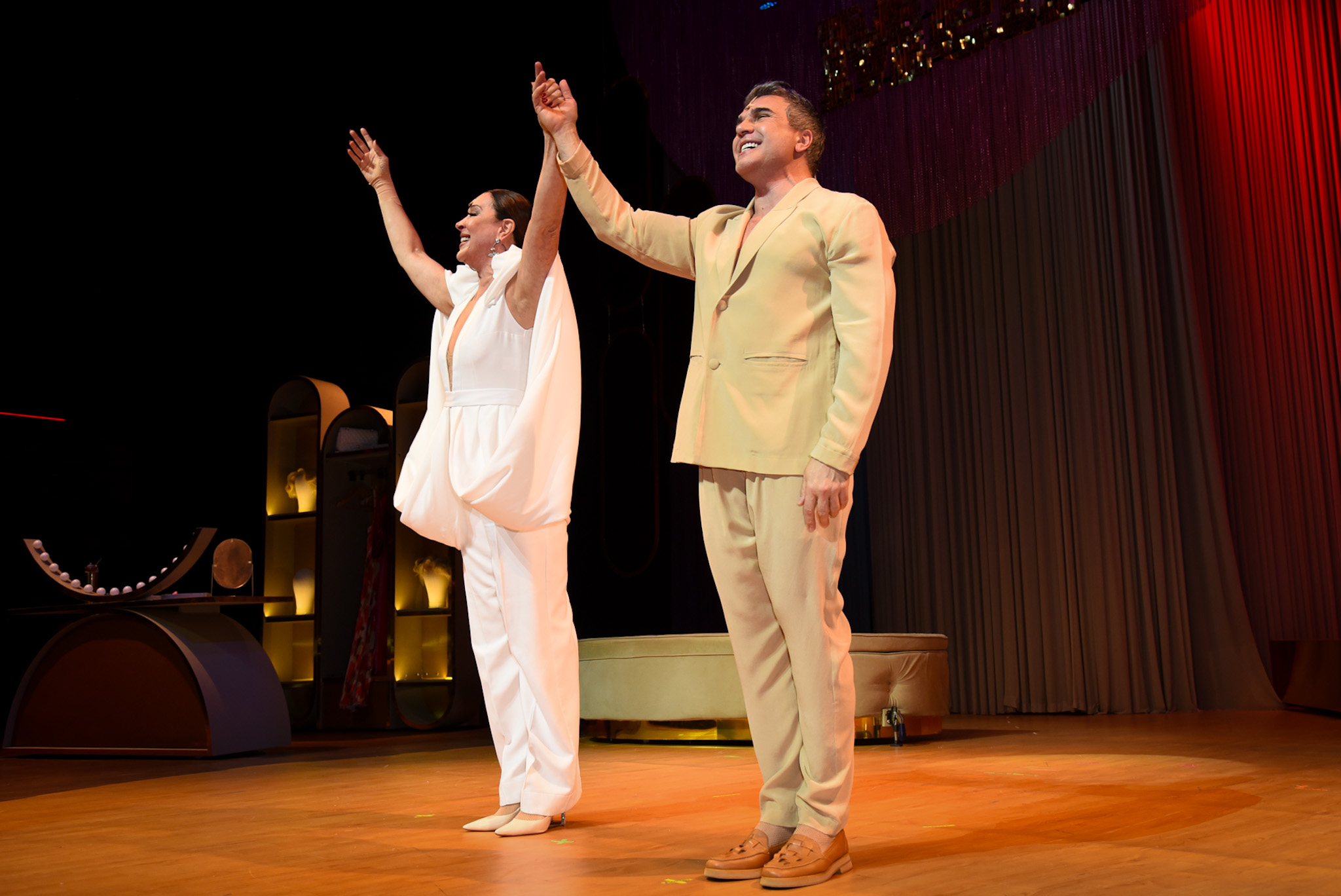 Claudia Raia e Jarbas Homem de Mello estreiam novo espetáculo e recebem famosos nos bastidores