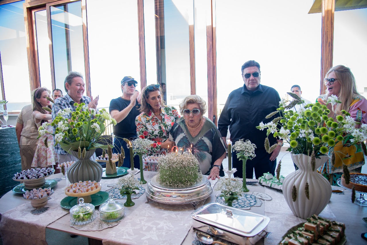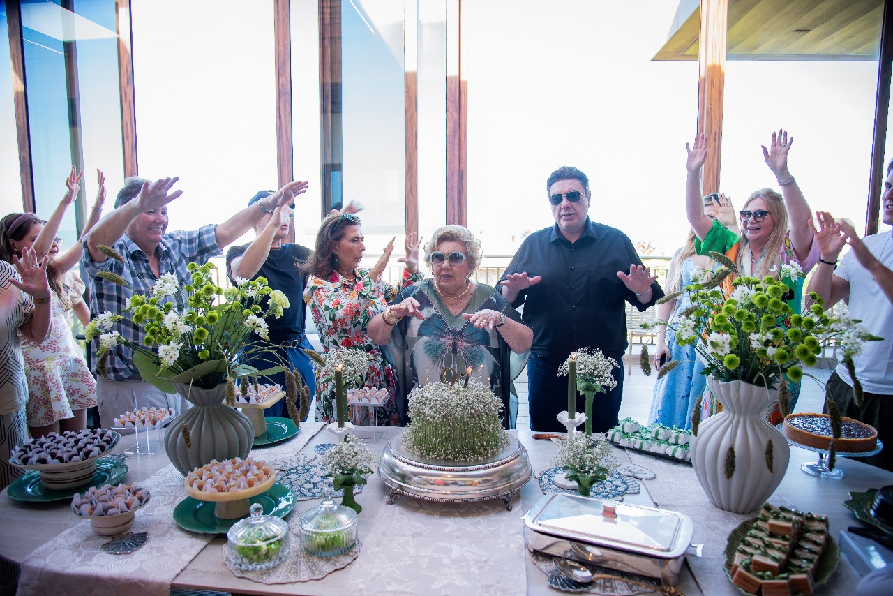 À beira-mar, Dona Consuelo Dias Branco celebrou seus 91 anos em uma tarde marcada por carinho e gratidão. O encontro, realizado na quinta-feira (23), reuniu filhos, netos e bisnetos no Aquiraz Riviera, onde a família se reuniu em torno da matriarca.