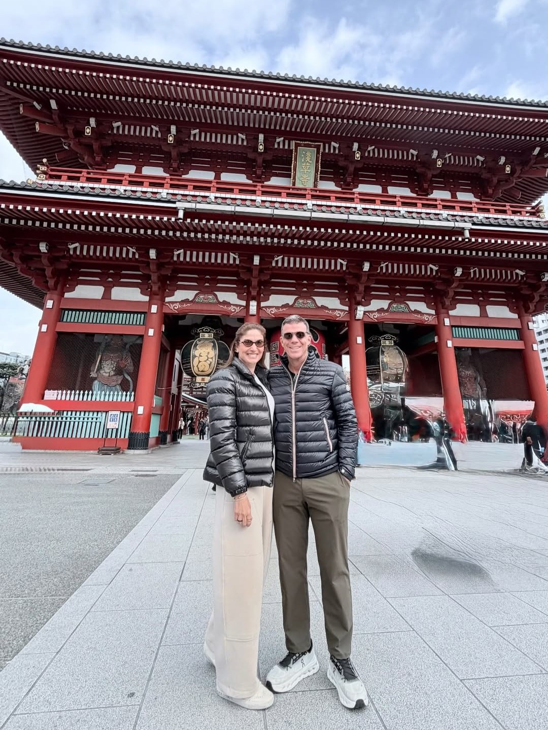 Diante da arquitetura milenar em tons marcantes de vermelho, o grupo registra momentos de contemplação e troca cultural, explorando um dos endereços mais simbólicos da cidade. O clima de inverno acompanha os passeios pela capital, enquanto os looks elegantes e confortáveis se alinham ao cenário histórico com naturalidade.