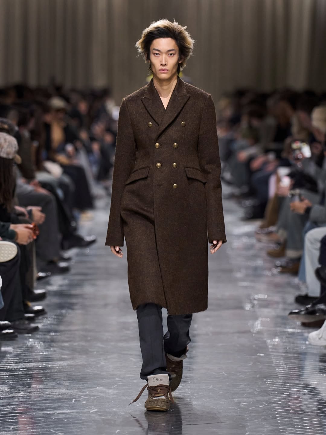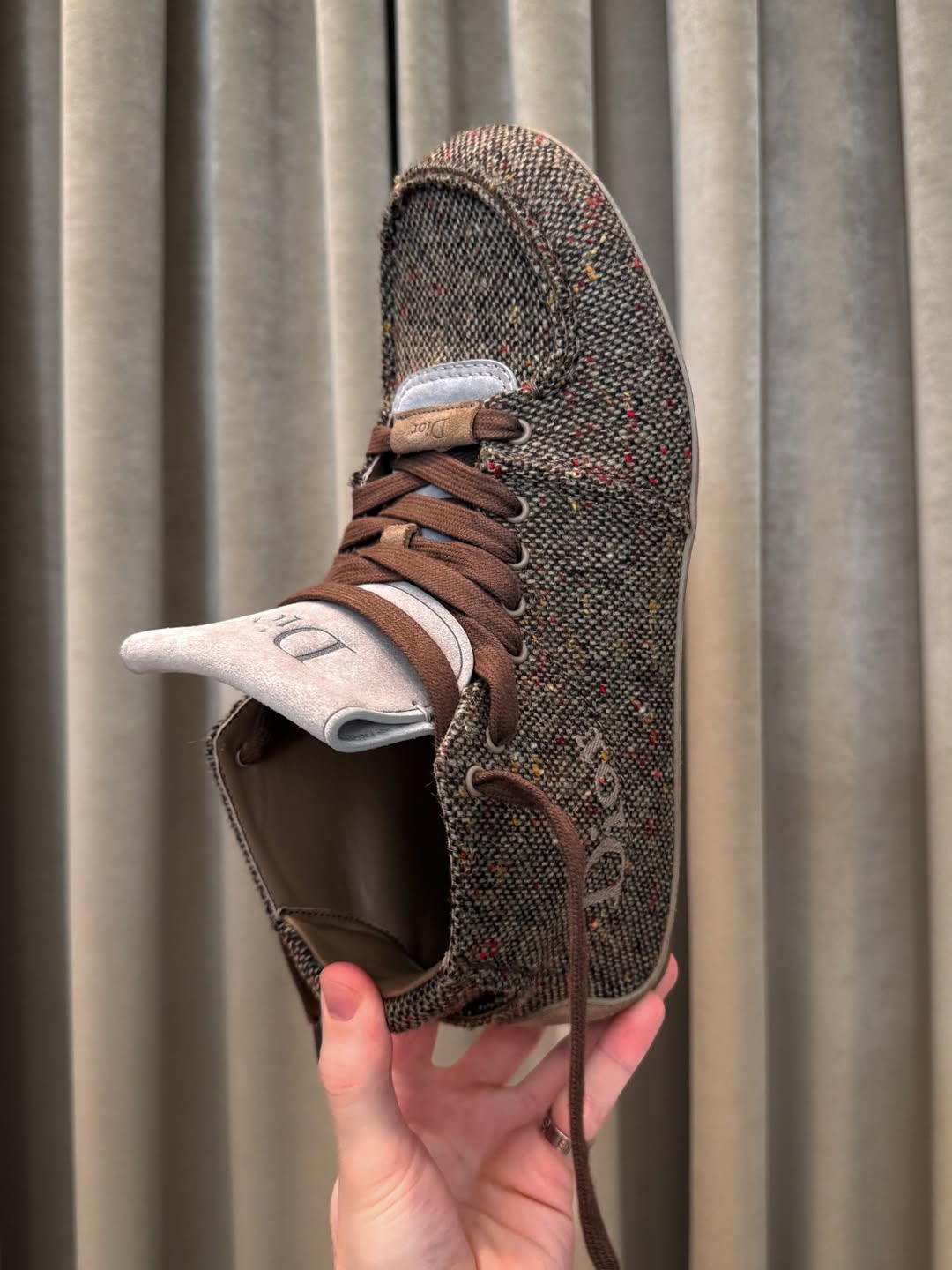 Na mais recente Paris Fashion Week, a Dior revelou novas versões do seu tênis Roadie, agora com acabamento em tweed, durante o desfile masculino Fall/Winter 2026 de Jonathan Anderson. Em sua segunda coleção de menswear para a maison, o estilista propôs um diálogo refinado entre o espírito dos andarilhos parisienses e referências da arte contemporânea, como o universo de Mk.gee, refletido também nos detalhes dos acessórios.