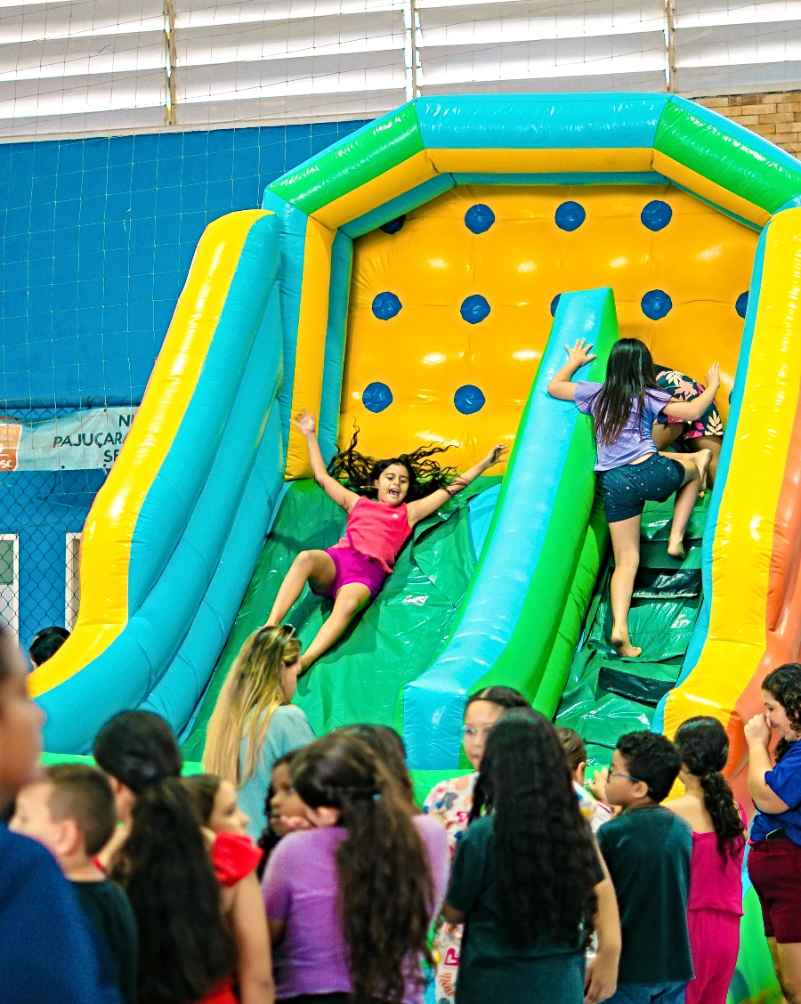 A cirurgiã plástica Georgia Machado realizou, no último fim de semana, o evento festivo ‘Juntos pelo Bem’, que reuniu mais de 200 crianças no Ginásio Poliesportivo Carlos Alberto Portela. O espaço foi transformado em um verdadeiro parque de diversões, com brinquedos variados e até uma animada quadra de futebol de sabão, garantindo uma manhã de entretenimento e alegria.