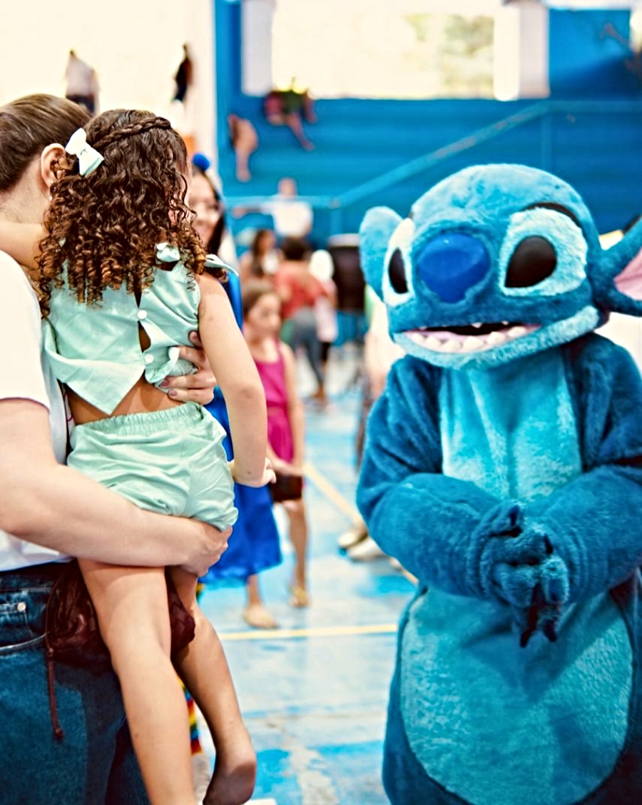 As atividades aconteceram durante todo o sábado (1º) e proporcionaram às crianças uma experiência completa, com diversão, brincadeiras e muita interação. Além do lanche preparado especialmente para o grupo, não faltaram pipoca, lanche e algodão doce, distribuídos ao longo do evento. Um dos momentos mais aguardados pelos pequenos foi a participação de uma animadora vestida como Stitch, personagem da Disney, que encantou a criançada, tirou fotos e trouxe ainda mais energia à festa.