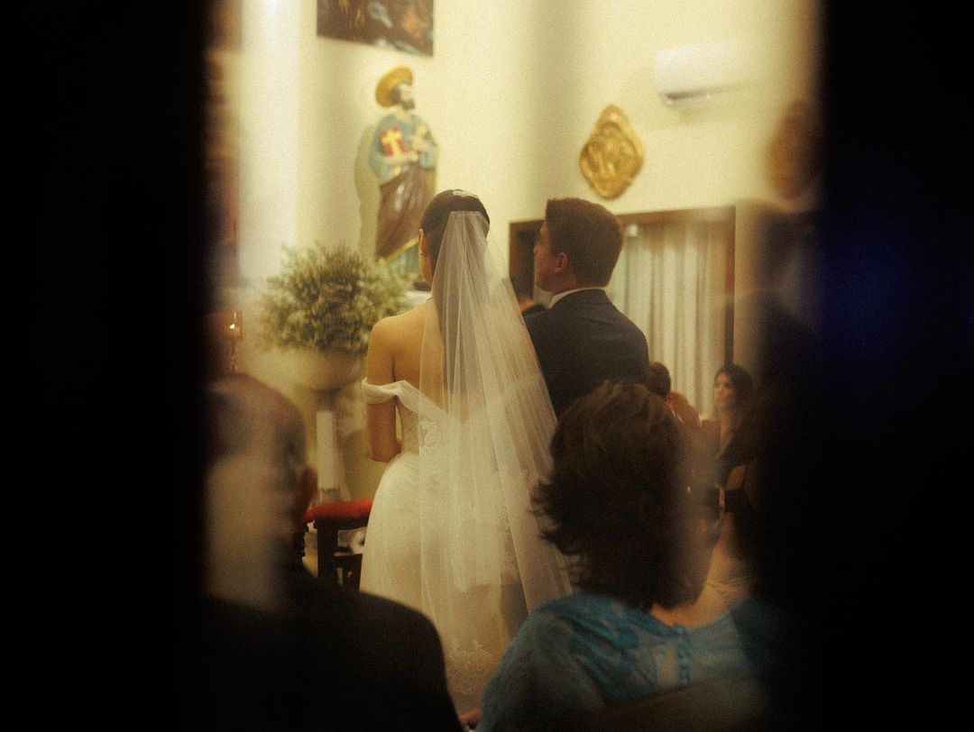 Como reza a tradição católica, Maria Eduarda Cidrão e Vitor Veras trocaram alianças, na terça-feira (14), em uma emocionante cerimônia no altar da Igreja de São Pedro.