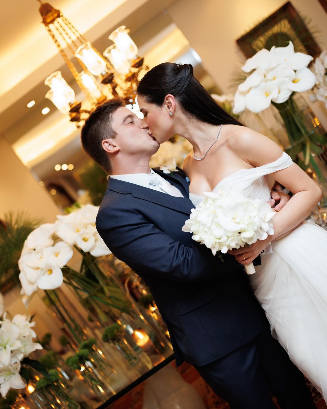 Após finalmente tornarem-se marido e mulher pela lei de Deus, o casal recepcionou seus queridos convidados na elegante residência dos avós maternos da noiva, Cândido e Valéria Quinderé, que contou com a sofisticada decoração de Branca Mourão, cerimonial da Celebre Eventos e bolo da Doceville.