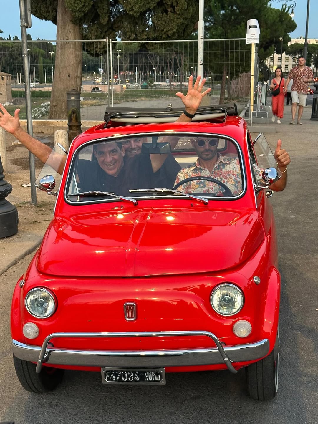 Na sequência, a família partiu rumo à Itália. Em Roma, a programação incluiu visitas ao Coliseu, passeios por cartões-postais da cidade e até um divertido rolê de mini Fiat pelas ruas históricas.