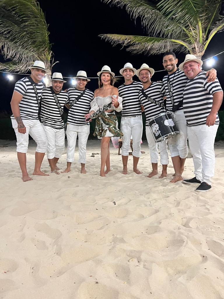 Rodeada de familiares e amigos íntimos, Patrícia Calderón festejou a nova idade durante um animado luau na Praia do Japão, em Aquiraz. Com direito a pé na areia, fogueira, e beira mar, a sessão happy birthday teve muito agito e animação ao som da “bateria mix” que foi escolhida para dar o tom extra de alto astral ao evento praiano.