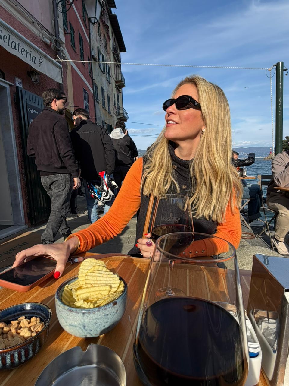 Pompeu e Mariana exploraram o entorno da pequena baía, com caminhadas pelo lugarejo, paradas em cafés e observação do pôr do sol que marca o ritmo da Riviera. O hotel, com suítes voltadas para o centro da vila e para o mar da Ligúria, funciona como ponto de observação privilegiado do movimento que define o destino. A Piazzetta, cartão-postal local, já foi palco de apresentações como o concerto de Andrea Bocelli.