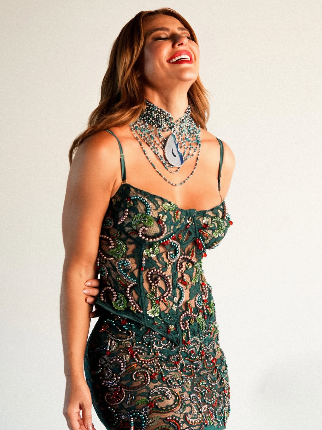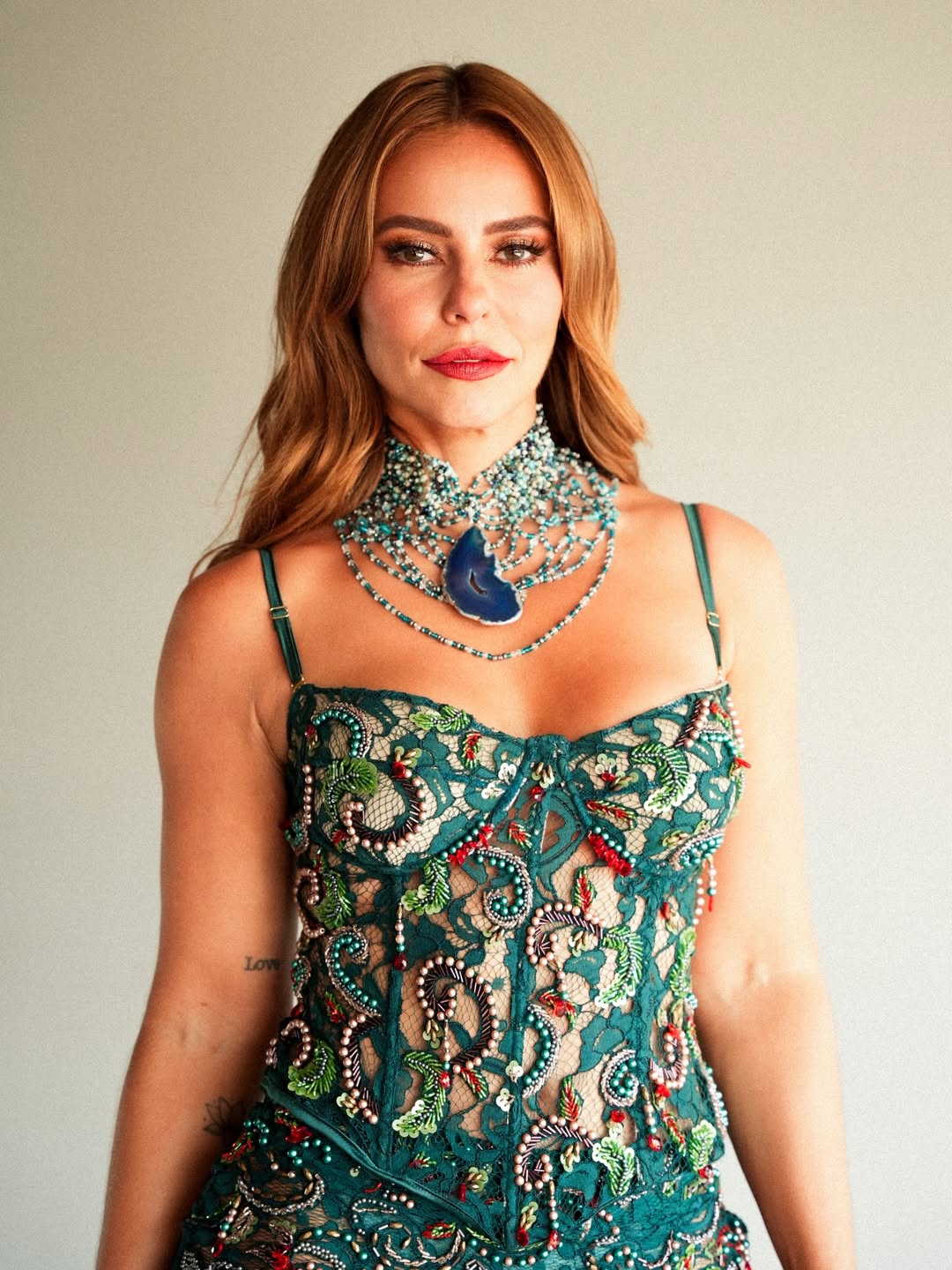 Para a ocasião, Paolla Oliveira apostou em um look bordado da grife Hisha, marca estreante no Rio Fashion Week, reforçando o diálogo entre celebração e moda autoral brasileira. O conjunto — composto por saia e corset com aplicações de pedrarias feitas à mão — tem valor aproximado de R$ 3,8 mil, e traduz uma leitura sofisticada do universo carnavalesco.