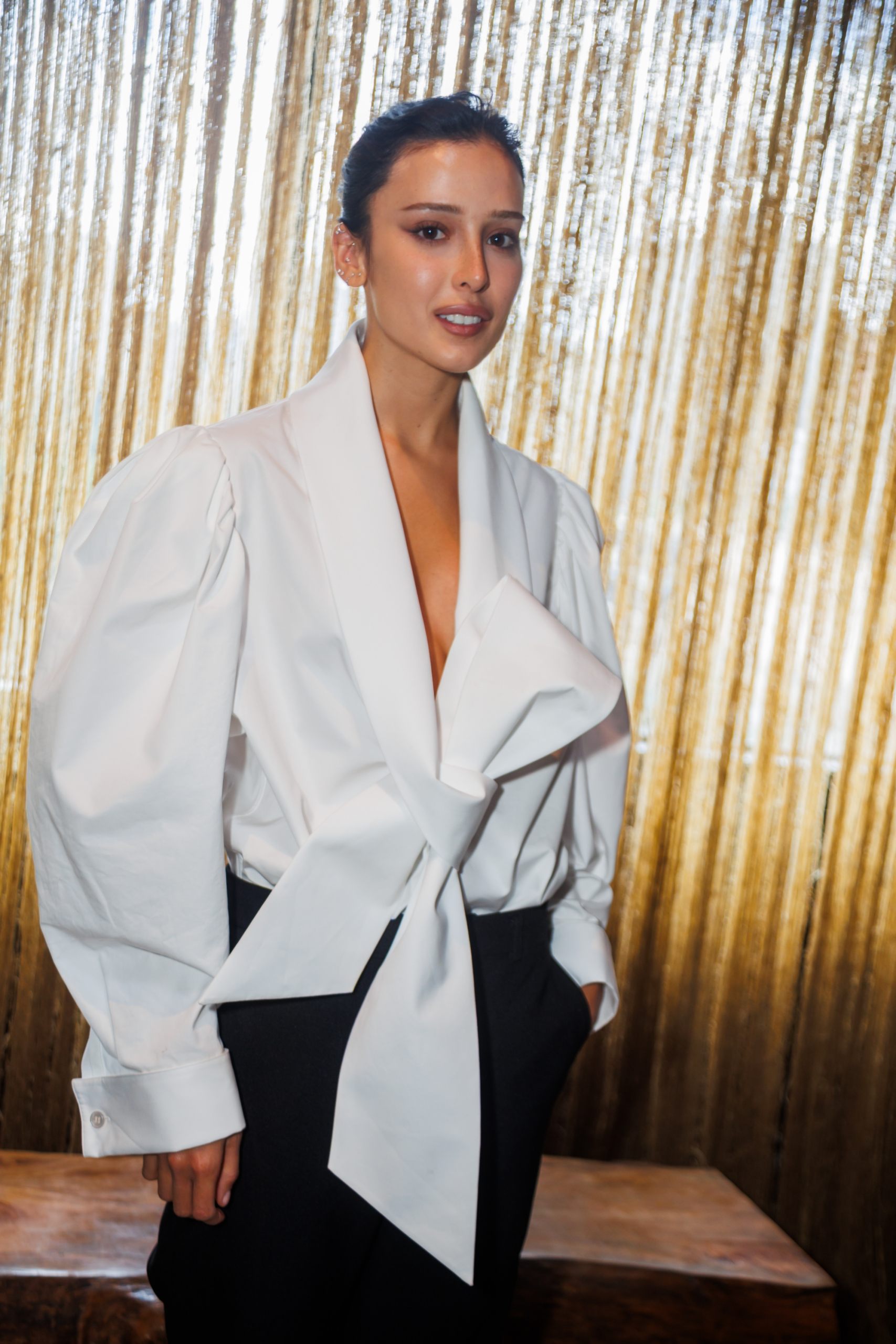 Entre os destaques, Sasha Meneghel antecipou uma peça inédita de sua marca, a Mondepars. O look, ainda não divulgado oficialmente, funciona como uma leitura precisa do momento em que criação e exposição se sobrepõem — e onde vestir é também comunicar posicionamento.