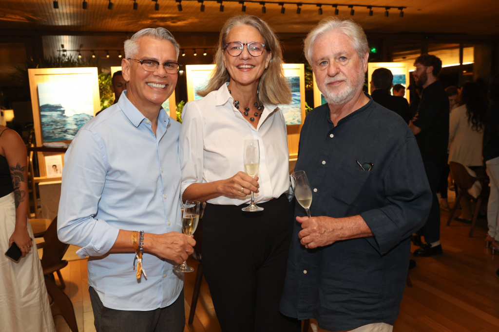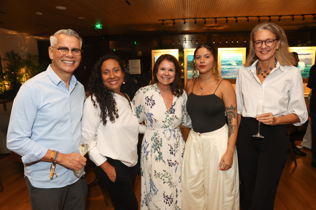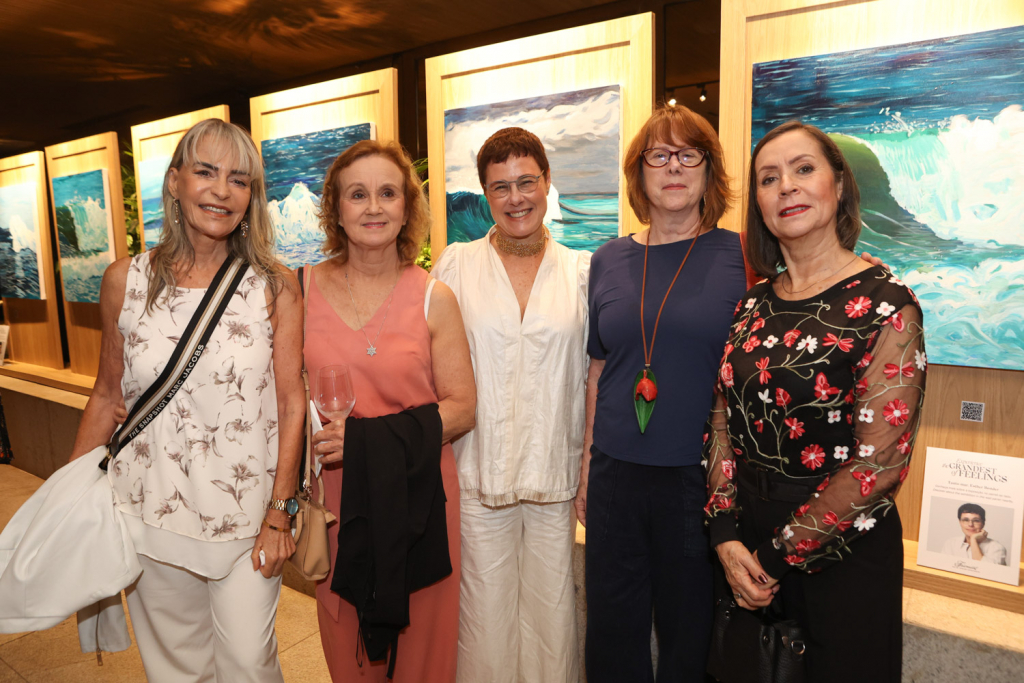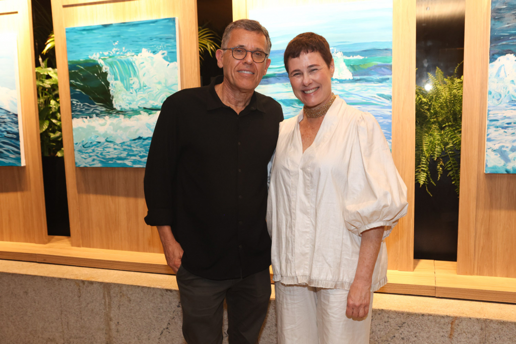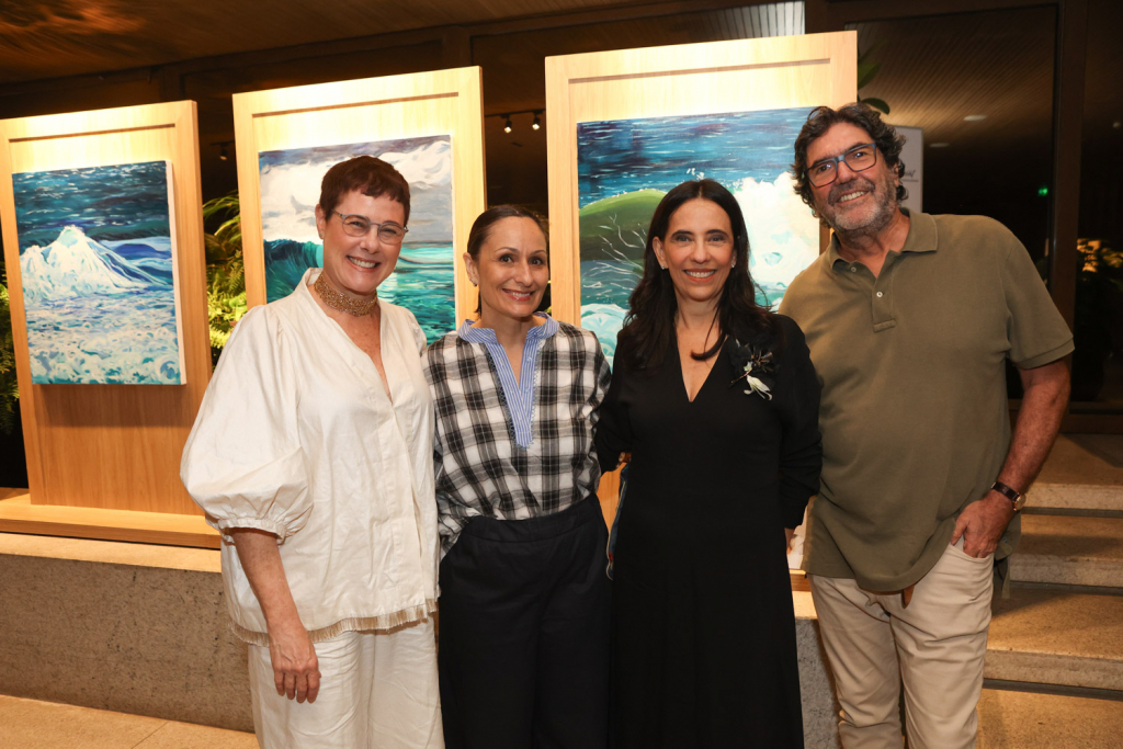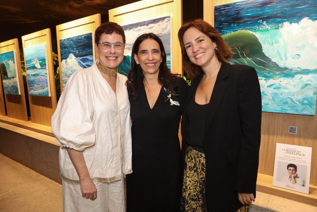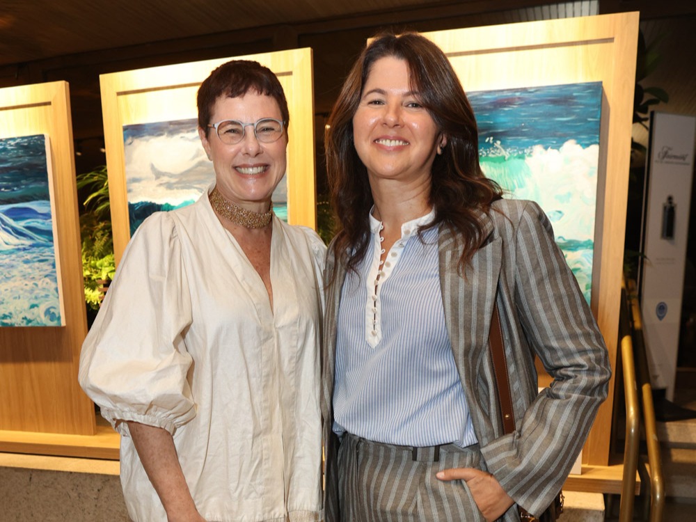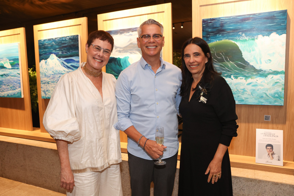 A artista carioca Esther Bonder abriu sua mais nova exposição, Tanto Mar, em uma noite de vernissage no Salão Arpoador do Fairmont Rio, que reuniu convidados da cena artística e cultural do Rio na última quinta-feira (10). Com curadoria de Christiane Laclau, a mostra propõe uma imersão nas nuances do oceano, explorando os ciclos da natureza por meio de telas marcadas pela leveza, movimento e transitoriedade.