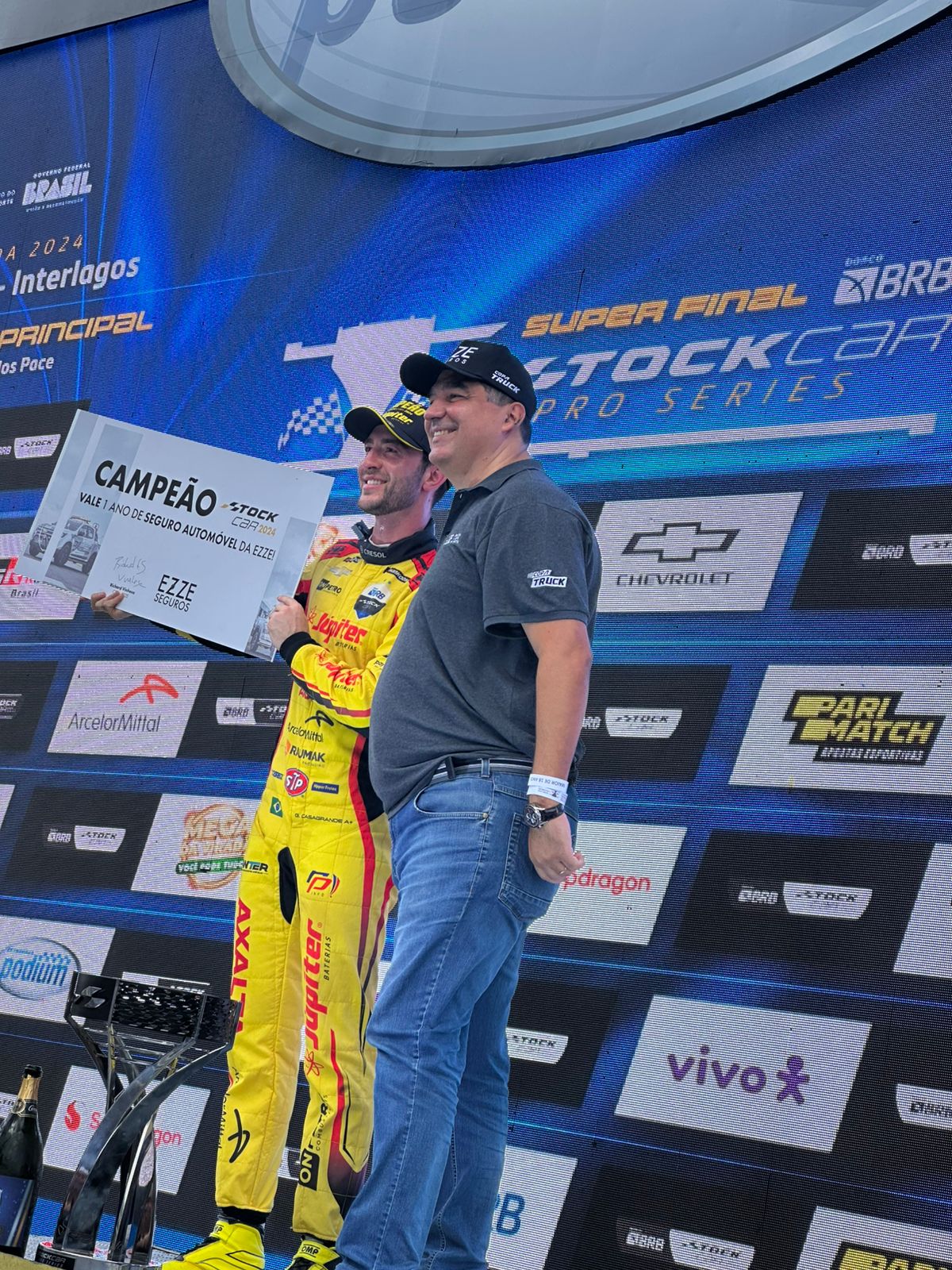 Durante a premiação, o CEO e sócio da EZZE, Richard Vinhosa, entregou o Vale Seguro ao piloto Gabriel Casagrande, que conquistou seu terceiro título na Stock Car Pro Series. O Portal IN, representado por Pompeu Vasconcelos, acompanhou de perto todos os detalhes dessa emocionante disputa, tanto no camarote quanto no grid de largada, junto à equipe de resgate da EZZE Seguros.