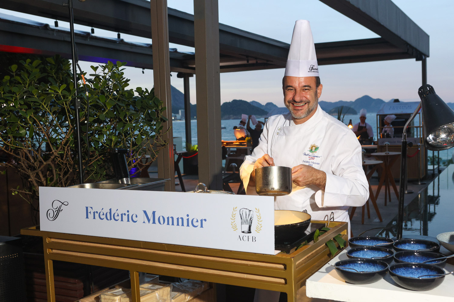 No comando das estações de degustação, o chef executivo do Fairmont Rio, Jérôme Dardillac, recém-integrado à Associação de Chefs França-Brasil, recebeu nomes de peso como Érick Jacquin (jurado do MasterChef e chef-proprietário do Président, em SP); Frédéric Monnier (presidente da associação); David Mansaud (chef consultor e cofundador da entidade); Frédéric de Maeyer (chef belga radicado no Brasil); João Paulo Frankenfeld (formado pelo Instituto Paul Bocuse e chef da premiada Casa 201); e a dupla do Le Cordon Bleu Rio: Philippe Brye, especialista em pâtisserie, e Yann Kamps, responsável pela cuisine. A noite contou ainda com a participação de Didier Labbé, Damien Montecer e Paula Prandini, chef à frente do Empório Jardim.