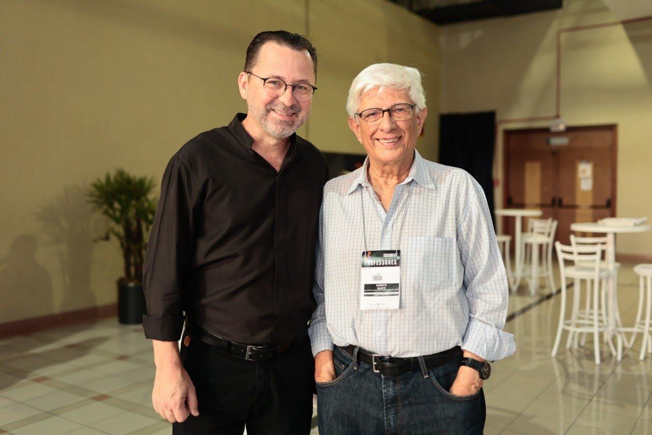 - Maestro Luiz Lenzi, que coordenou a Banda Sinfônica, e maestro Roberto Duarte professor de Regência Orquestral, considerado o principal curso do gênero na América Latina. Ambos professores do FEMUSC Foto: Cesar Castro.