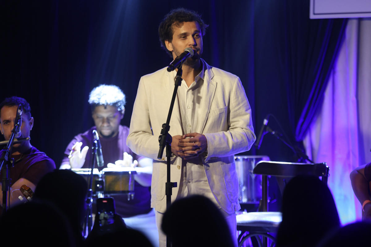 A noite de sexta-feira (6) foi de celebração musical no Blue Note Rio, em Copacabana, com o lançamento do álbum “Theo canta Chico Buarque”, novo projeto do cantor e compositor Theo Bial, filho do jornalista Pedro Bial e da atriz Giulia Gam. Pedro Bial acompanhou a apresentação de perto e não escondeu a emoção ao ver o filho interpretando clássicos da MPB.