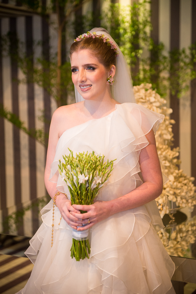 Para marcar este belo capítulo em sua história de amor, a noiva decidiu chamar sua prima e fashion designer, Flávia Petri para elaborar um vestido elegante e moderno.