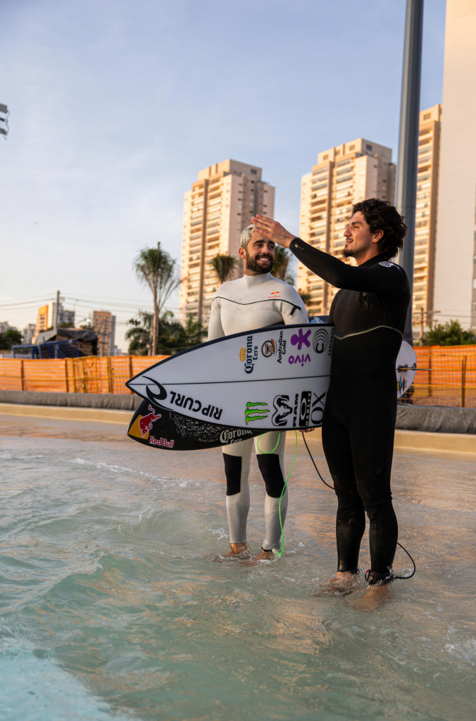 Depois de quatro meses afastado do mar, Gabriel Medina voltou a pegar ondas — e escolheu fazer isso longe da praia. No último sábado (10), o tricampeão mundial de surfe celebrou seu retorno oficial no Beyond The Club, clube urbano premium do qual é sócio e que abriga a maior piscina de ondas Wavegarden do mundo. A volta simbólica aconteceu em São Paulo, dentro do megacomplexo esportivo da KSM Realty, onde Medina acompanhou os testes da estrutura ao lado de nomes como Pedro Scooby, Jadson André, Alex Ribeiro e Dani Garcia.