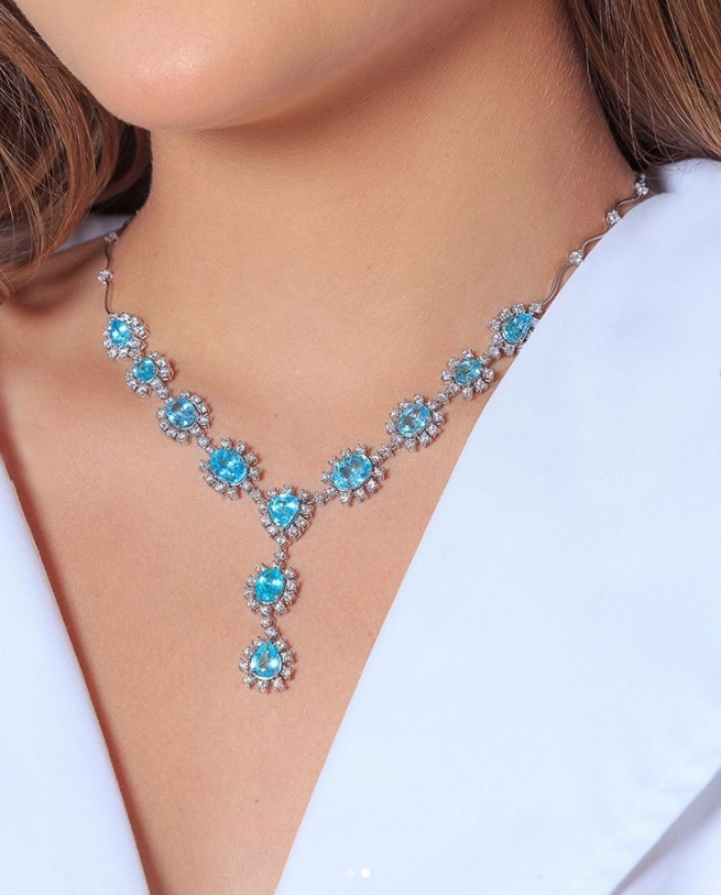 Herdeira de Graça Dias Branco e Jório da Escossia Jr, Gabi esbanjou elegância e atitude com as joias, apresentando um mix entre peças clássicas e acessórios mais cool, como foi o caso do ear cuff cometa em diamantes e o colar #DDMasterPiece em Turmalinas Paraíba. Um chame!