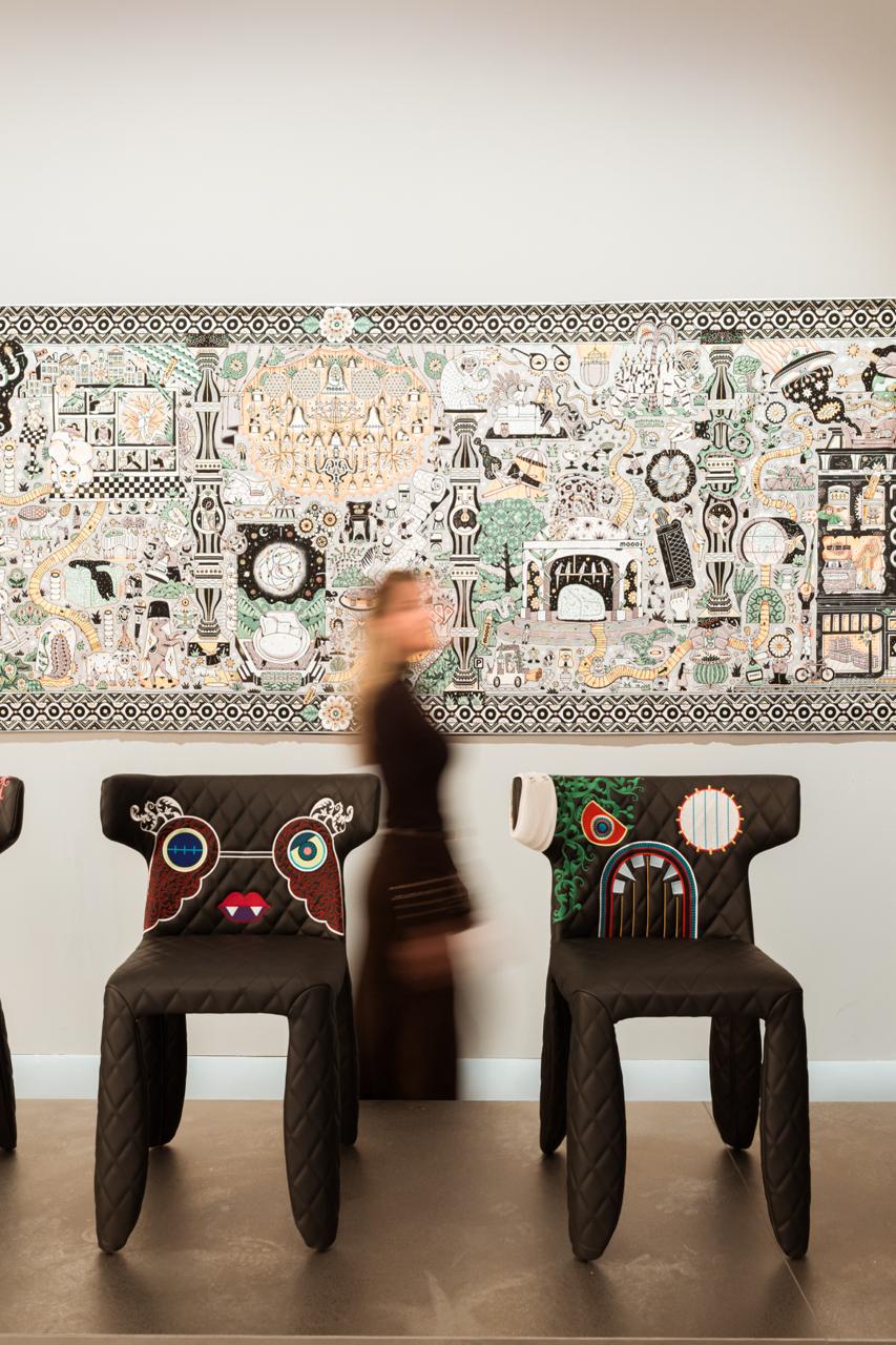 Ao longo dos dias, profissionais percorreram estandes de nomes como Moooi, Cassina, B&B Italia e Moroso, além de experiências com marcas que integram sua curadoria. Entre os destaques, a Moooi apresentou releituras de peças icônicas e uma abordagem voltada à evolução de seu próprio repertório, reforçando a continuidade de linguagem.