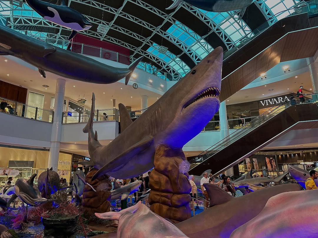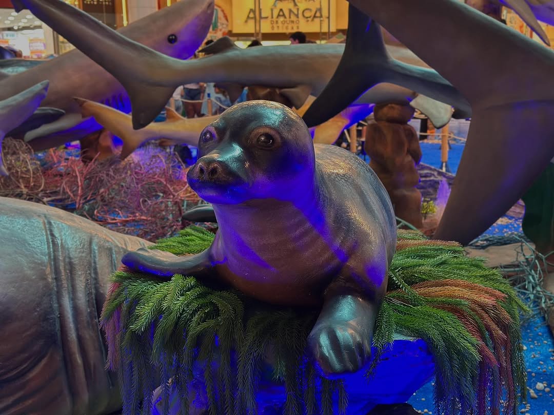 Entre as atrações, réplicas em tamanho real de algumas das criaturas mais imponentes dos oceanos — como tubarões majestosos e baleias colossais — prometem impressionar visitantes de todas as idades. A ambientação detalhista, com luzes, sons e elementos cenográficos, recria o fundo do mar, despertando sensações e memórias afetivas em um convite irresistível à contemplação e ao aprendizado.