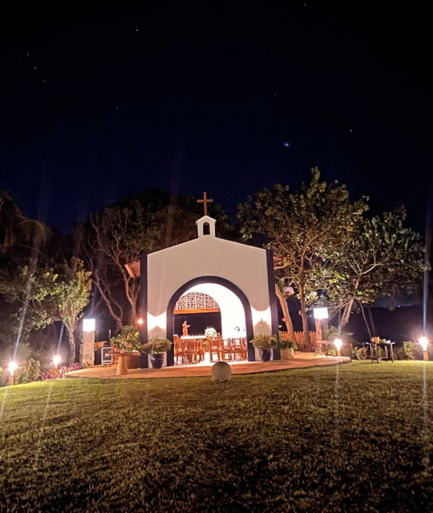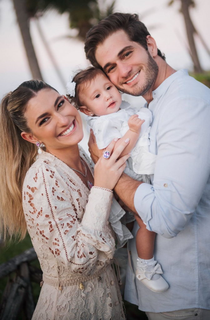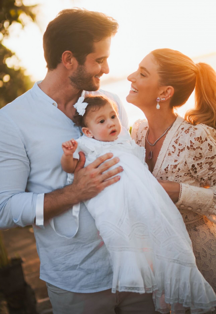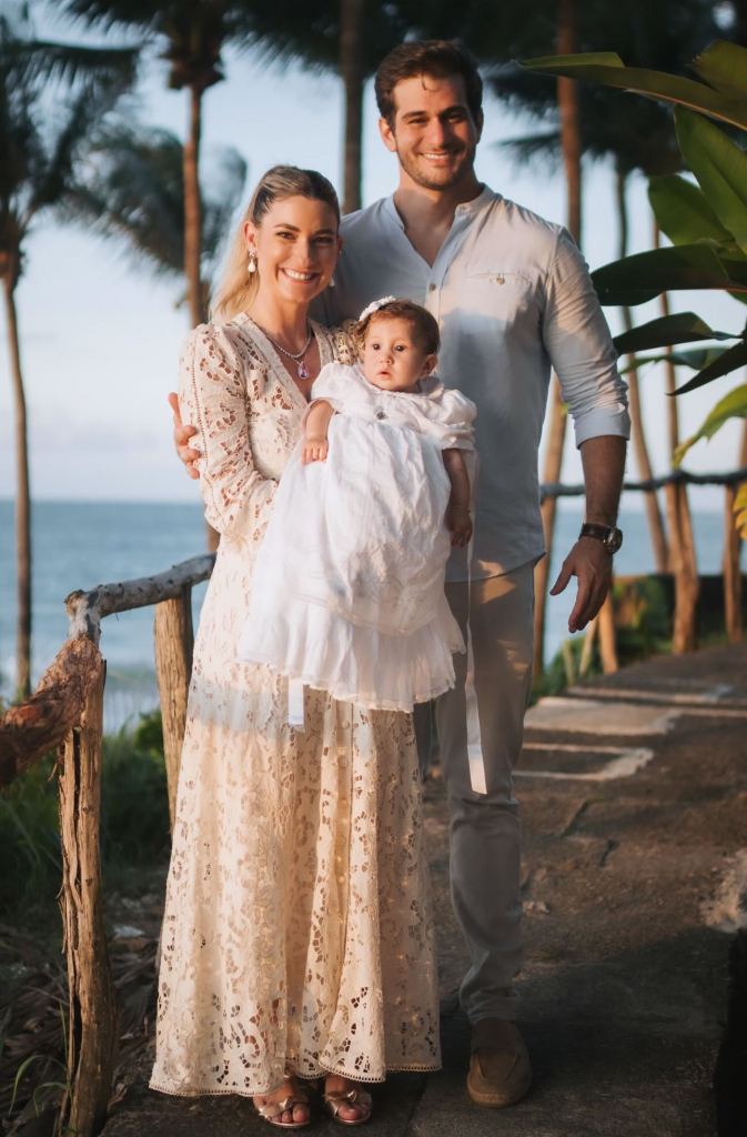 Em uma tarde repleta de significado e emoção, Bruna Magalhães e Ravi Macêdo batizaram a filha, Helena, de oito meses, no sábado (26), na Capela de São José, em Paracuru. A cerimônia também marcou a inauguração da capela, construída no sítio da família, no mesmo local onde o casal celebrou seu casamento e erguida como um sonho antigo da família, abraçado com entusiasmo por Patricia e Amarílio Macêdo, pais de Ravi. Para tornar o momento ainda mais especial, Bruna, Ravi e Helena chegaram à igreja a bordo do icônico Jeep Willys que pertenceu ao bisavô de Helena, José Dias de Macêdo.