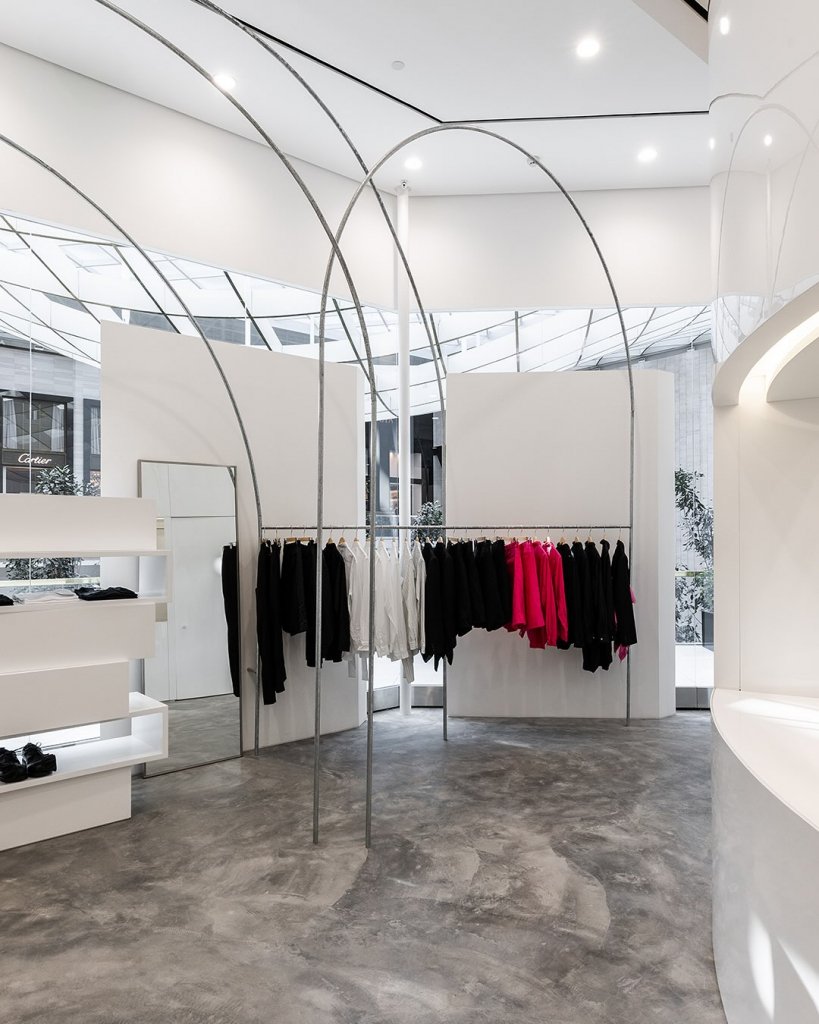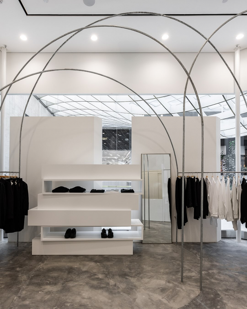 O projeto arquitetônico foi desenvolvido internamente pela equipe da marca, seguindo a filosofia que orienta todas as lojas da Comme des Garçons ao redor do mundo: cada unidade com identidade visual própria, refletindo o contexto local.