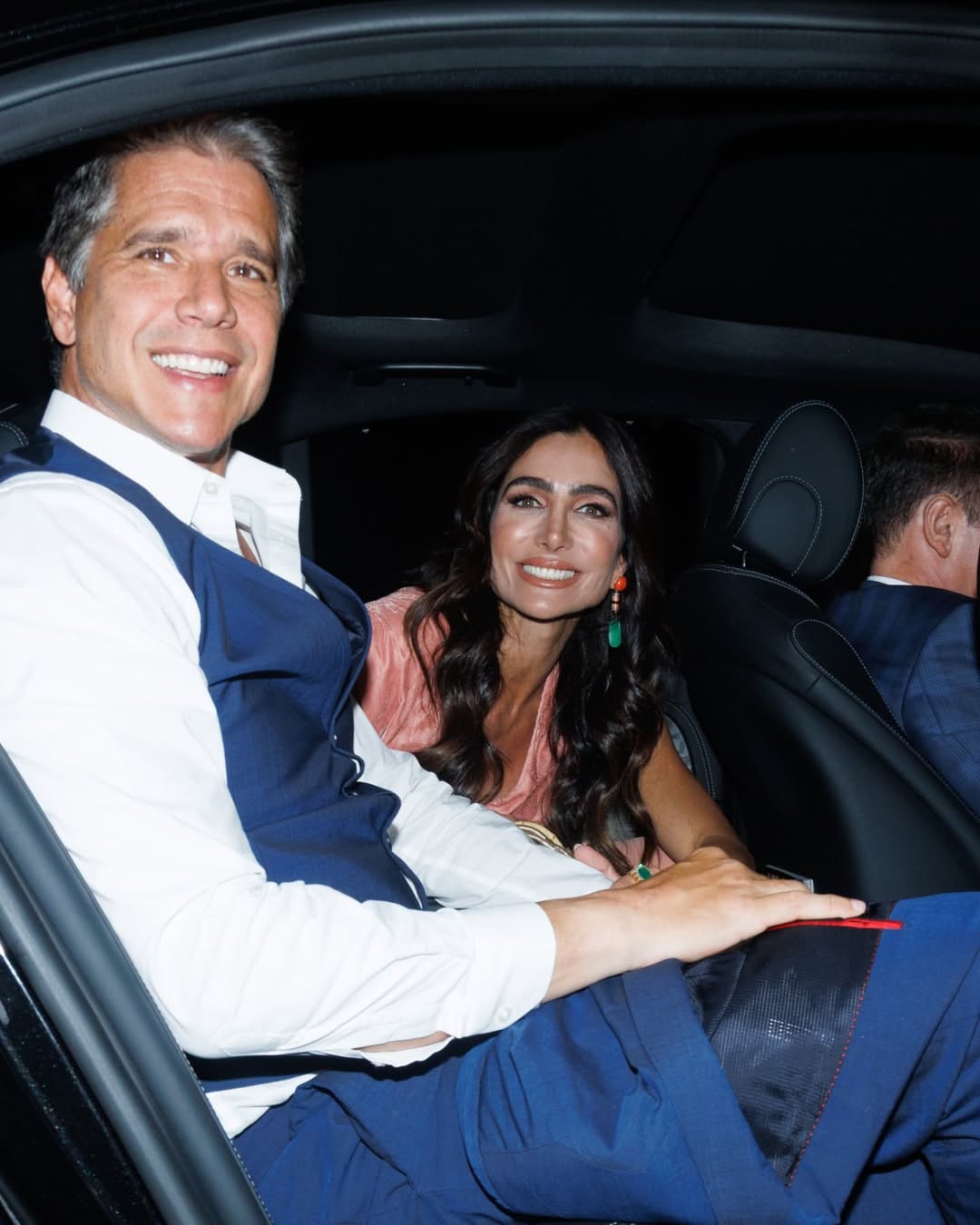 Isis surgiu em uma criação da icônica Vivienne Westwood, da coleção Vive La Bagatelle. Para completar, ela optou por sapatos Christian Louboutin e joias Gaem e Beatriz Werebe. O styling é assinado por Tina Kugelmas, enquanto a beleza é de Henrique Martins. Com o tempo curto para um modelo sob medida, os clássicos Nova Bagatelle e Minerva foram transformados para refletir o estilo único da atriz — sensual, delicado e absolutamente memorável. Ao seu lado, Marcus Buaiz optou por um look clean e preciso da Hugo Boss, selando o altar com elegância atemporal.