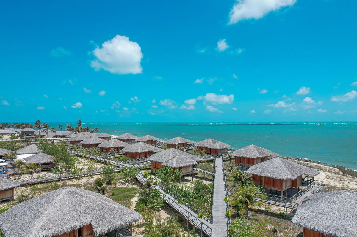 São 23 ecolodges projetados para aproveitar a ventilação natural, com muxarabis e amplas aberturas que dispensam o uso de ar-condicionado e mantêm o frescor mesmo nos dias mais quentes. O complexo de oito hectares abriga piscina semiolímpica, spa que utiliza produtos naturais, quadras de beach tennis e o maior centro-escola de kitesurf do Ceará, com 15 instrutores bilíngues. O encontro entre rio e mar oferece ainda condições ideais para esportes náuticos e passeios ao ar livre.
