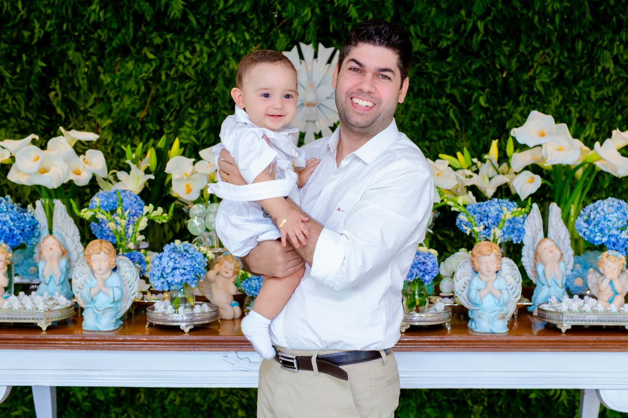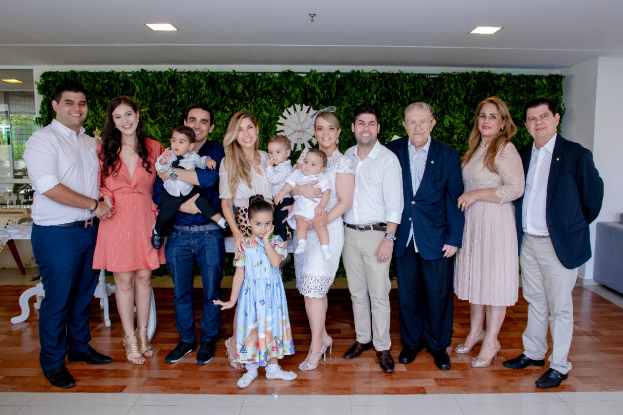 Após a celebração com a presença do bizavô, Mauro Benevides, os familiares e amigos foram recepcionados no Brisas do Parque, em um brunch com buffet assinado pelo Casal Gourmet, com docinhos da Doce Mel e decoração em tons de azul e branco by Priscila Capelo. O cantor Betinho Aguiar foi o responsável por animar o momento, com uma trilha sonora especial.