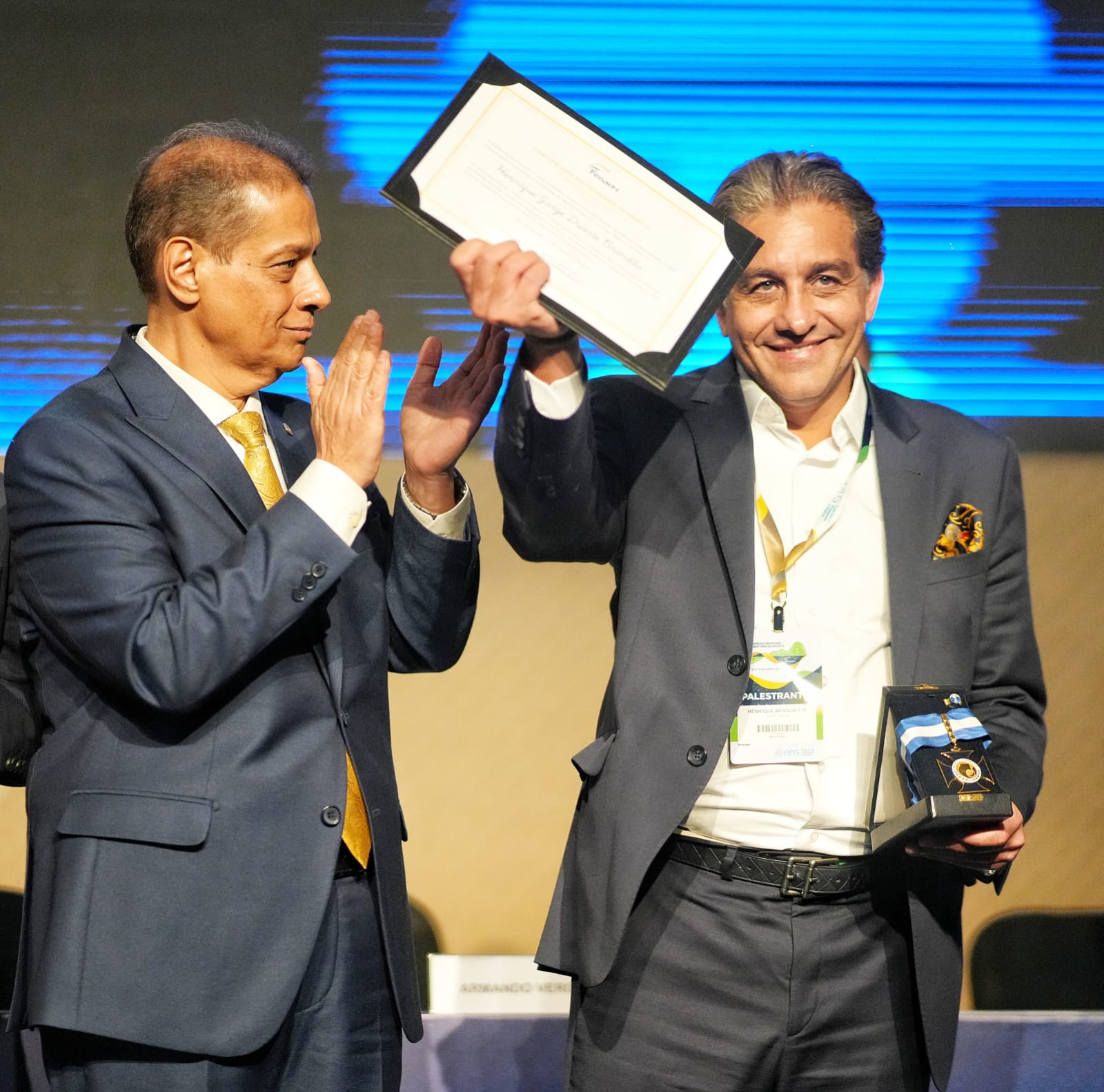 Durante a solenidade, o presidente do Sincor-RJ, Ricardo Garrido, deu as boas-vindas aos participantes e prestou homenagem a Henrique Jorge Duarte Brandão, ex-presidente e fundador do Grupo Assurê, falecido em fevereiro de 2024. Seus filhos — Henrique Brandão Junior, Érika Brandão Gleicher, Leandro Brandão e Cícero Brandão — receberam uma placa e uma menção honrosa das mãos do governador do Rio de Janeiro, Cláudio Castro, e do presidente da FENACOR, Armando Vergílio, reconhecendo o impacto duradouro de Brandão no setor de seguros.