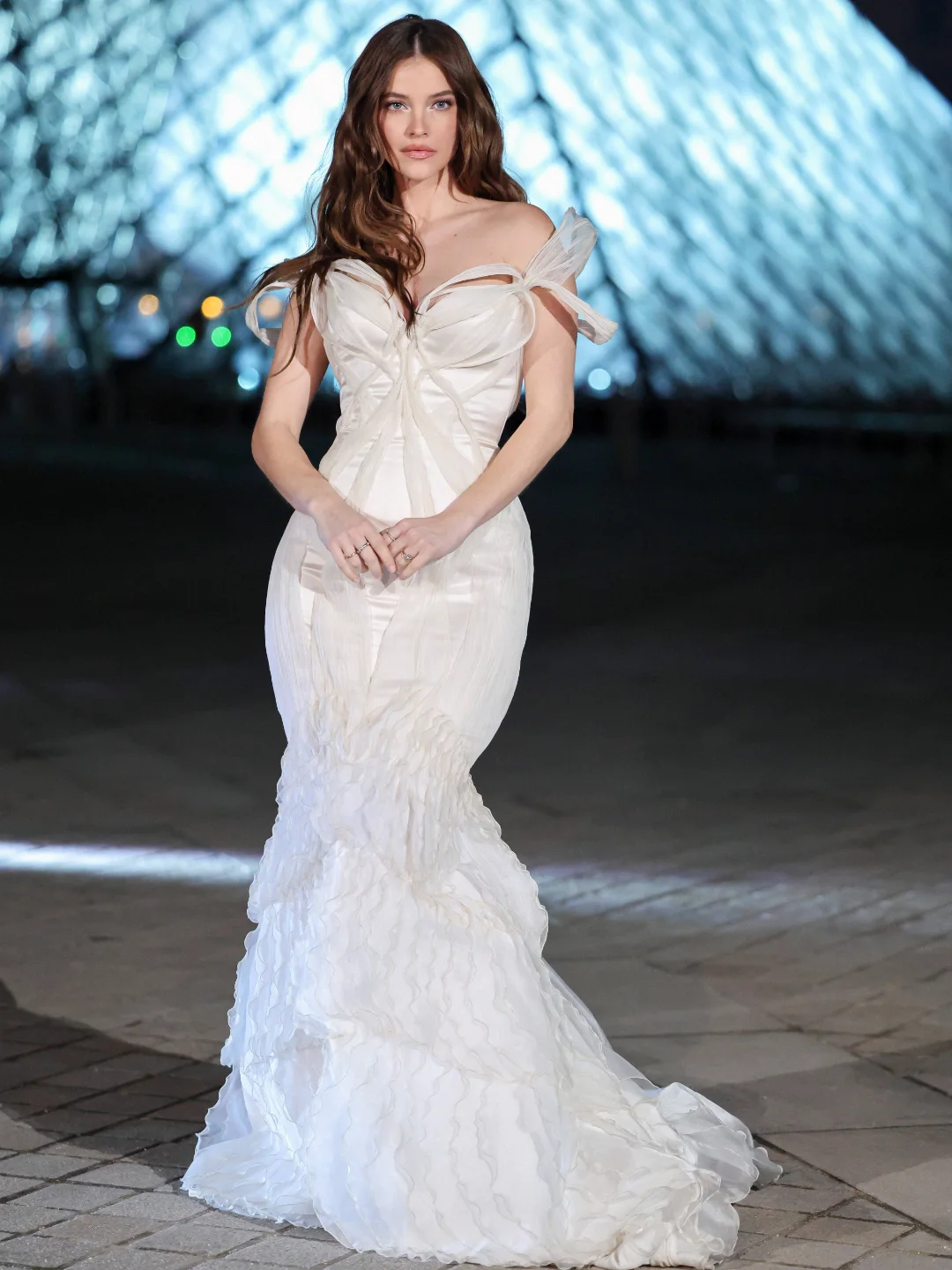 A edição deste ano seguiu o conceito “Le Louvre, la nuit”, que propôs uma experiência noturna pelas galerias do museu. A recepção começou na Galerie Daru, diante da icônica escultura Vitória de Samotrácia, antes de os convidados seguirem para o jantar principal.