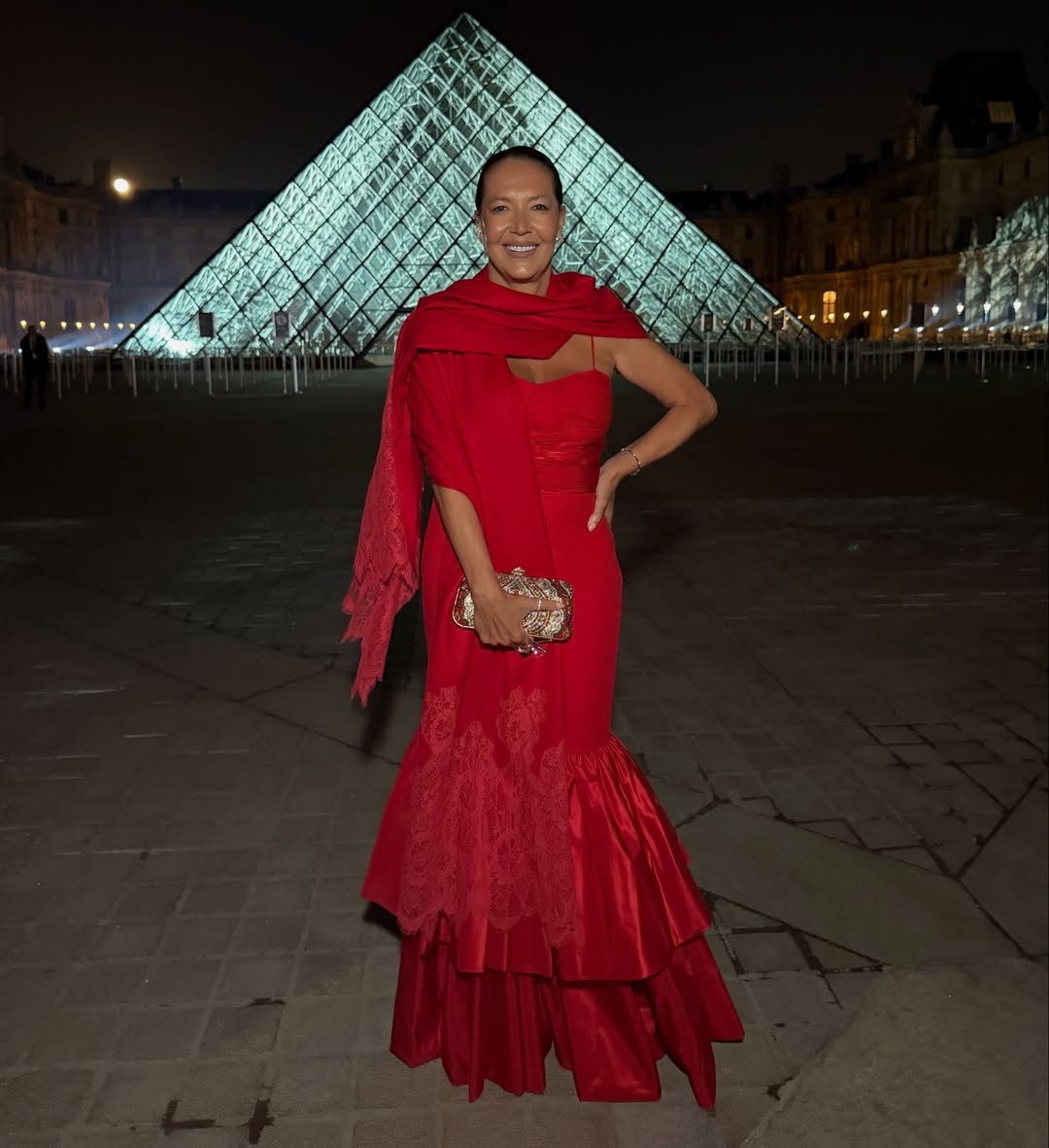 A programação da noite incluiu recepção especial, visita privada às exposições, jantar servido na Cour Marly e after-party sob a icônica pirâmide de vidro do Louvre, um dos cenários mais fotografados de Paris.