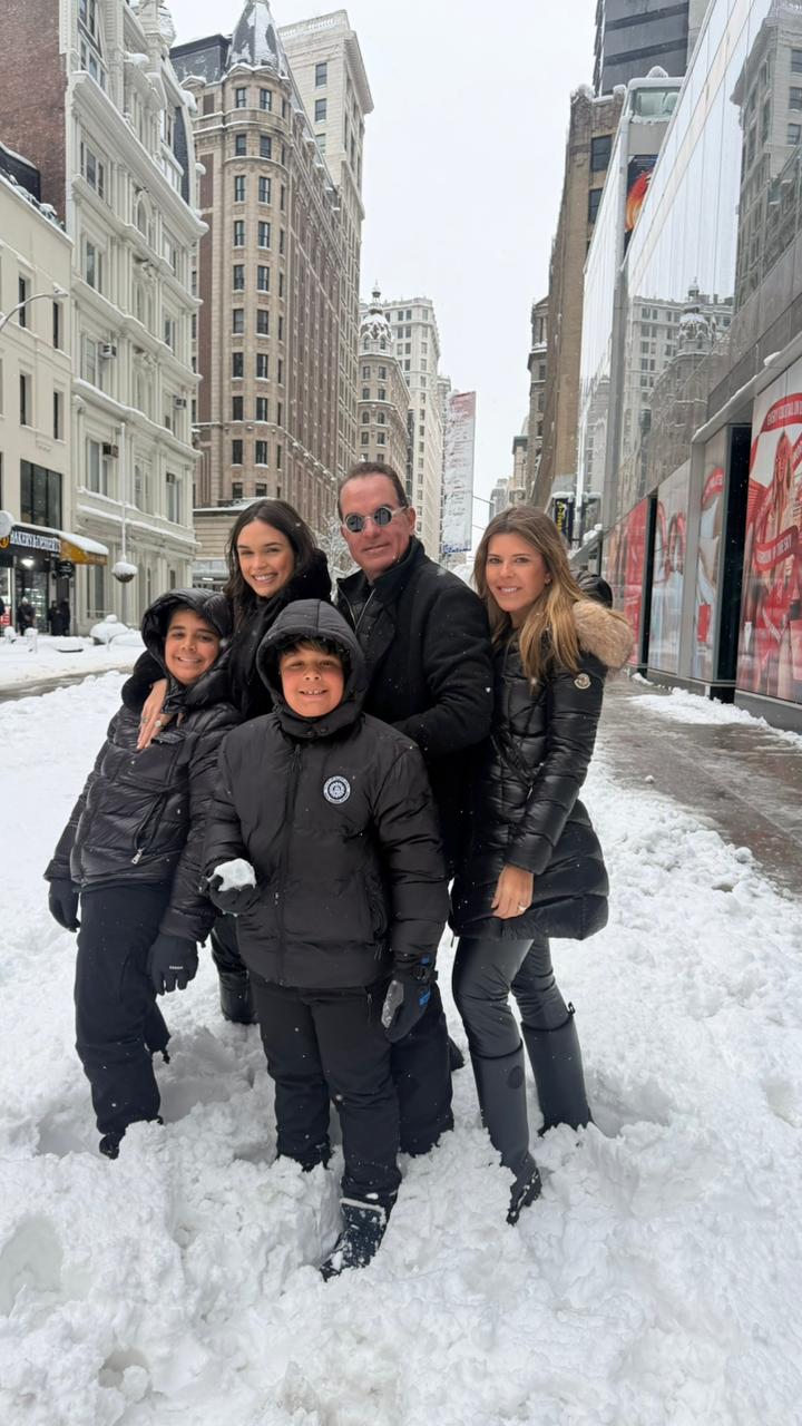 Também estão na viagem os filhos Mariana, Lara, Leo e Lucas, que participam dessa temporada especial marcada por encontros, risadas e memórias compartilhadas. A celebração acontece em meio a uma forte temporada de neve na cidade, que transformou o cenário urbano em uma típica paisagem de inverno, adicionando ainda mais significado ao momento.