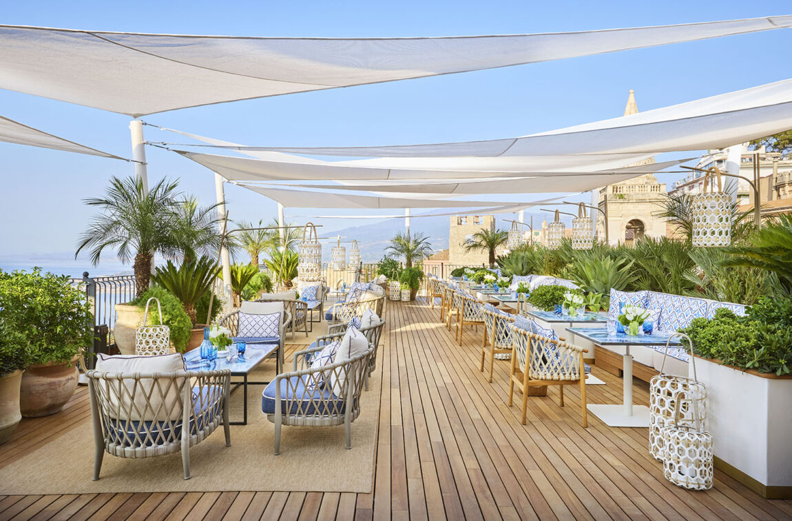 Localizado na prestigiada Corso Umberto I, o bar exibe tons de azul e branco, inspirados pelo mar que banha a Sicília. Sob a direção do chef Roberto Toro, do renomado Belmond Grand Hotel Timeo, o menu sofisticado inclui pratos regionais com um toque contemporâneo, como os tradicionais arancini, tartare de atum de Favignana, além de delícias de caviar e ostras. Os drinques são um espetáculo à parte, com oito coquetéis autorais criados pelo mixologista Claudio Adelfio, que refletem a essência de Taormina.