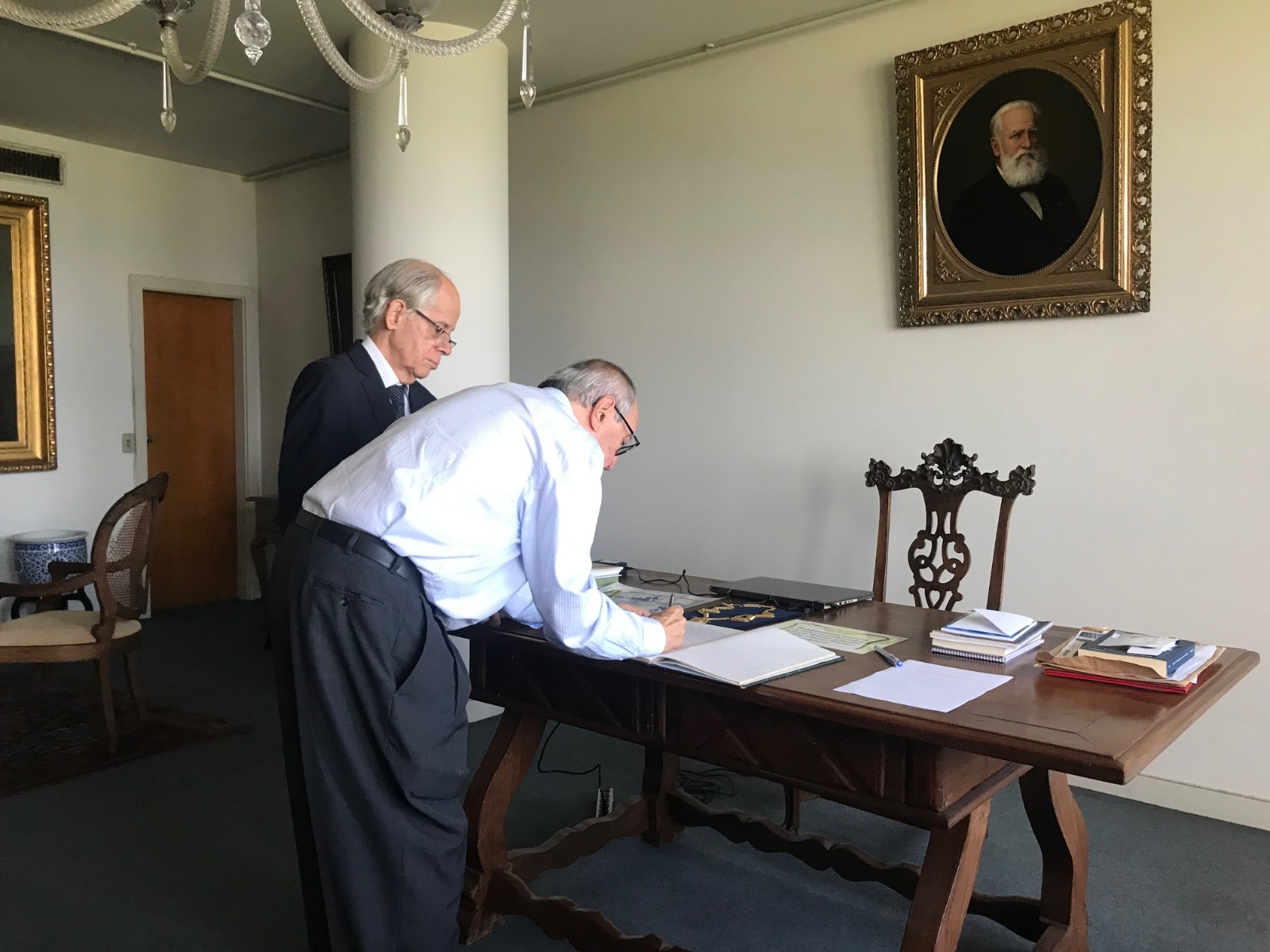 A posse administrativa aconteceu na sala da Presidência do IHGB e contou com as presenças do presidente do IHGB, Victorino Chermont de Miranda, e da secretária do IHGB, Lúcia Paschoal Guimarães.