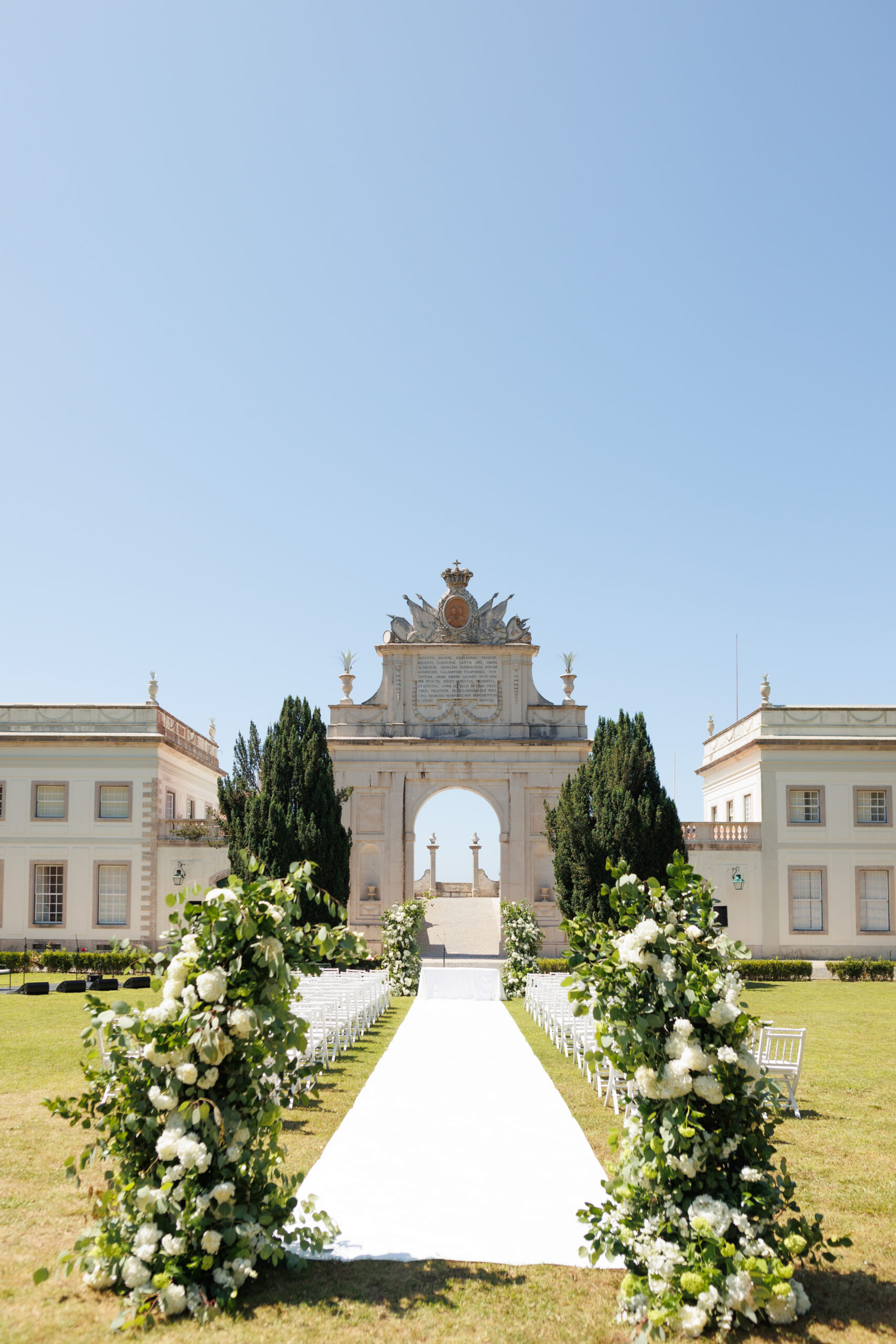 Marcella Cidrão e Leonardo Vidal unem-se em matrimônio sob os arcos majestosos do Palácio de Seteais
