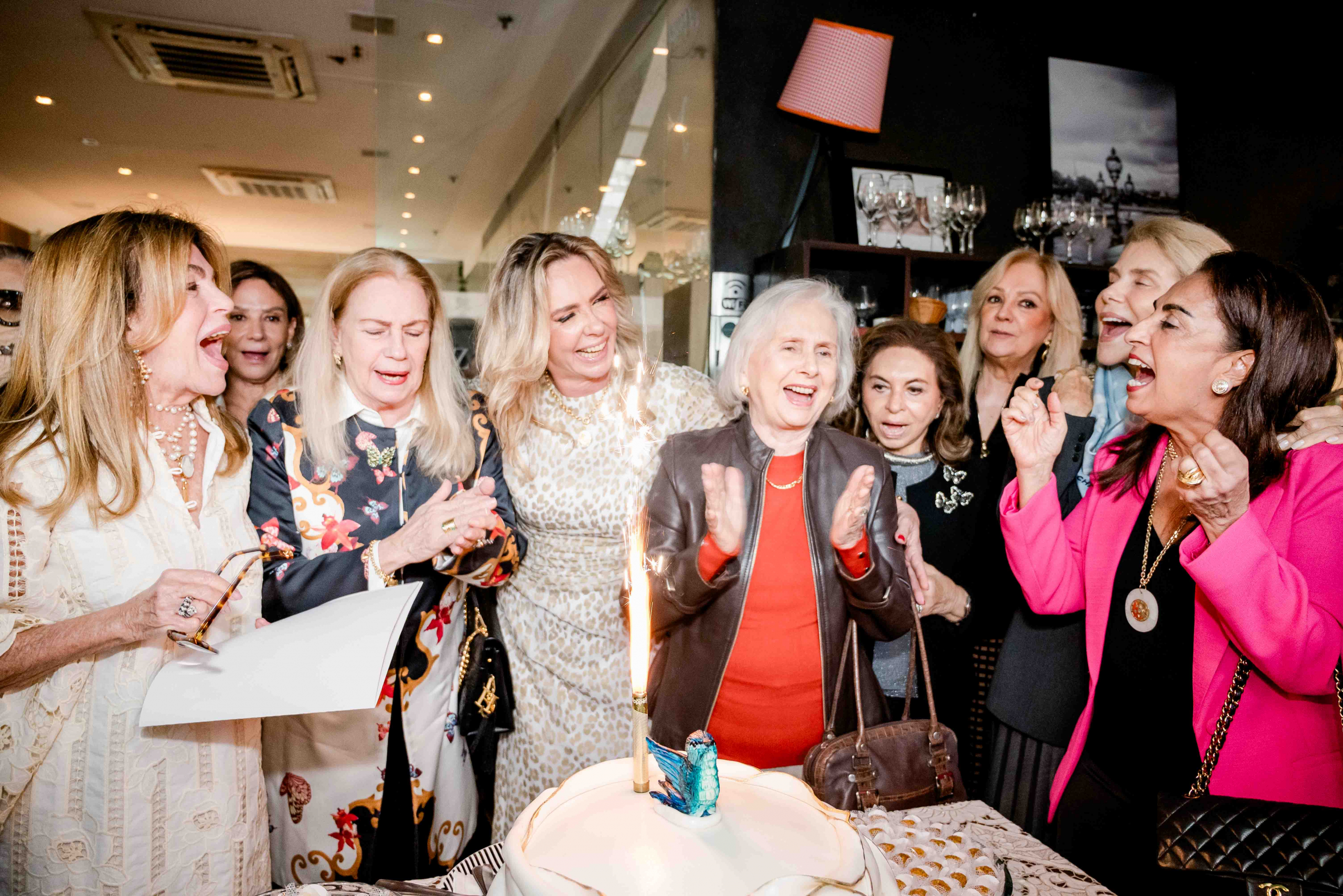 A relações públicas recebeu convidados em um almoço reservado, marcado por reencontros e boas risadas. Entre os presentes, estavam Glória Severiano Ribeiro, Sonia Simonsen, Paola Figueiredo, Manoela Ferrari, Fátima Martins e Tereza Barros Franco.