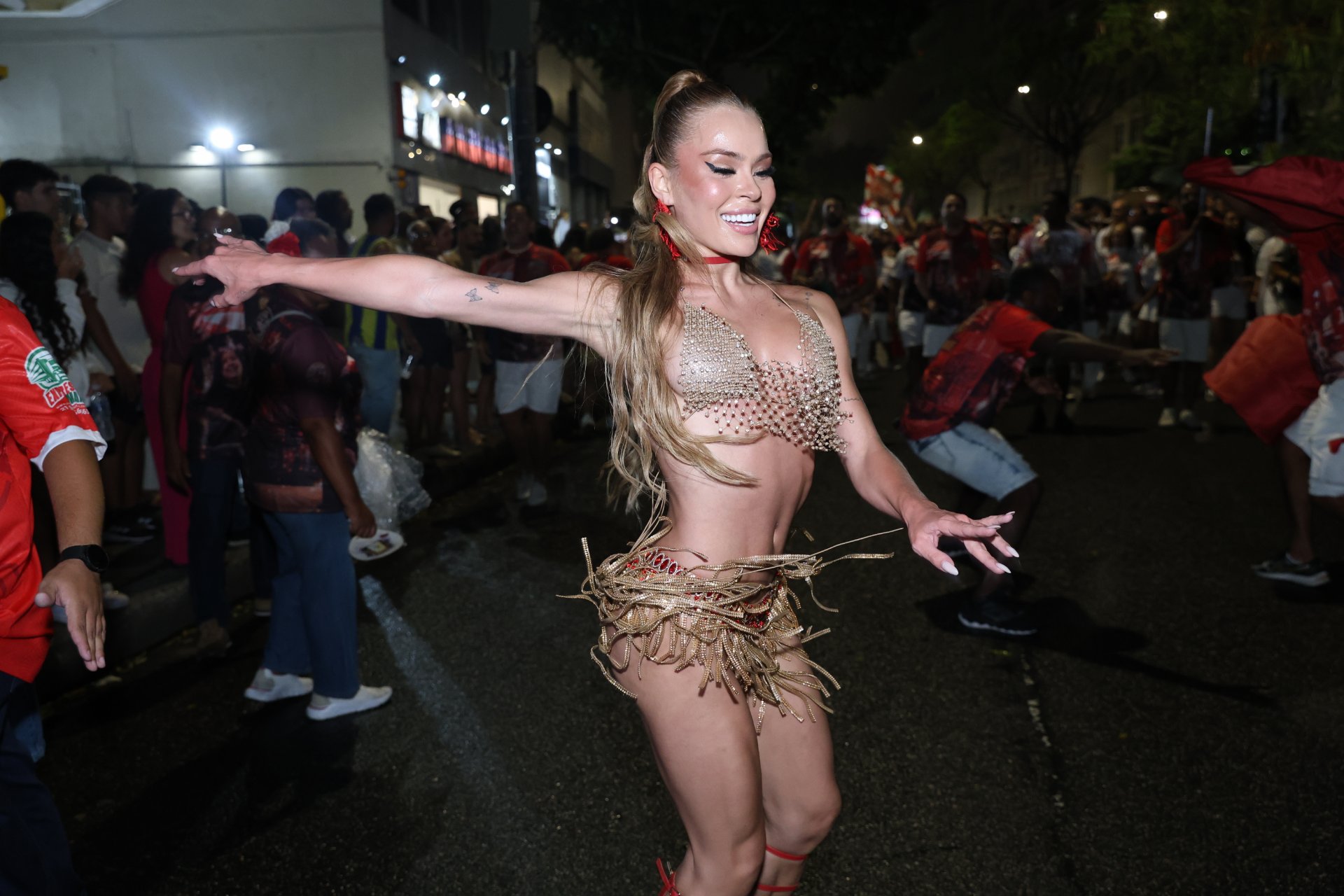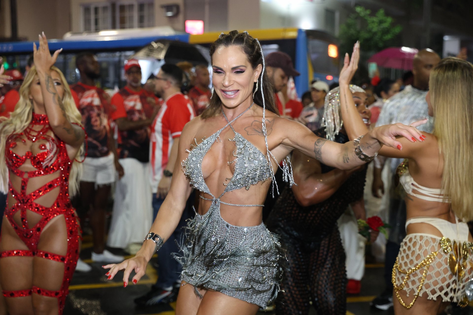 Entre as alas, Bruna Griphao, Bia Michele, Bruna Esquenta, Amanda Omin e Bianca Salgueiro acompanharam a evolução ao lado dos componentes. A presença das musas reforçou o entrosamento com a escola e o acompanhamento prático do ritmo, da marcação e do deslocamento ao longo do percurso.