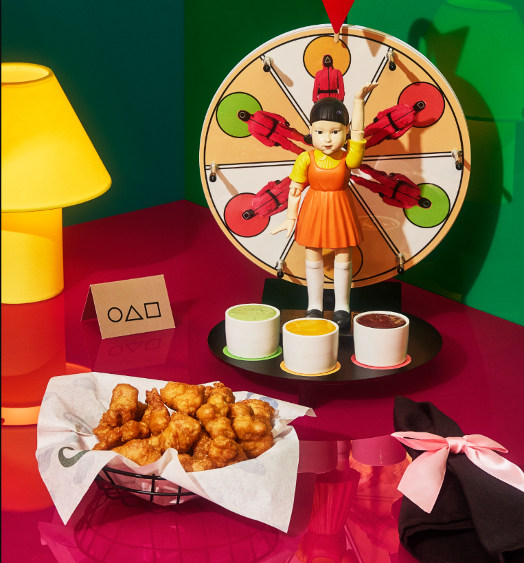 Com mais de 70 opções no menu, o restaurante aposta na interatividade para transformar a experiência dos clientes em algo único. Um dos destaques é o desafio “Red Bite, Green Bite”, inspirado em Round 6 (Squid Game), que convida os clientes a girar uma roda para definir o molho de seus nuggets de frango. Outra atração popular é a “Surfer Boy Pizza”, de Stranger Things, que chega à mesa em uma caixa especial com um número de telefone para interação com os personagens.