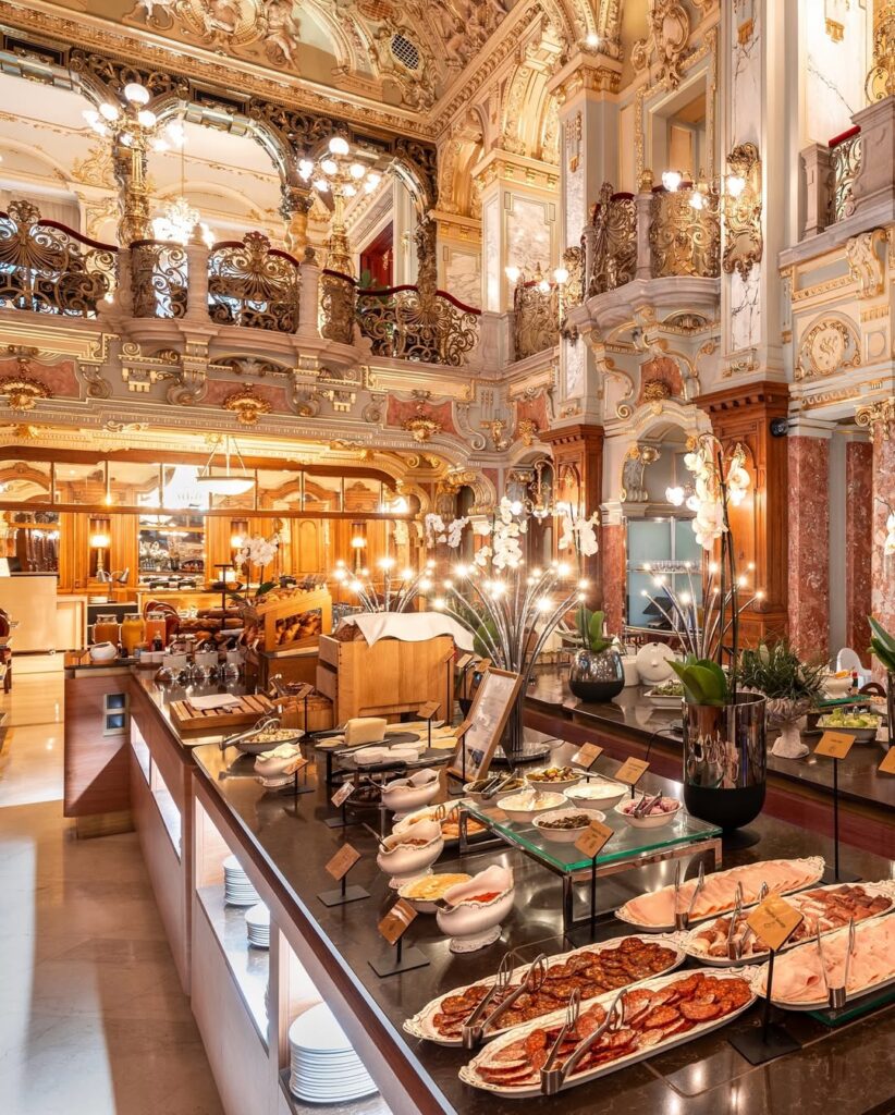O café está integrado ao Hotel Anantara New York Palace Budapest, que combina a imponência do século XIX com o conforto e a modernidade da hotelaria contemporânea.