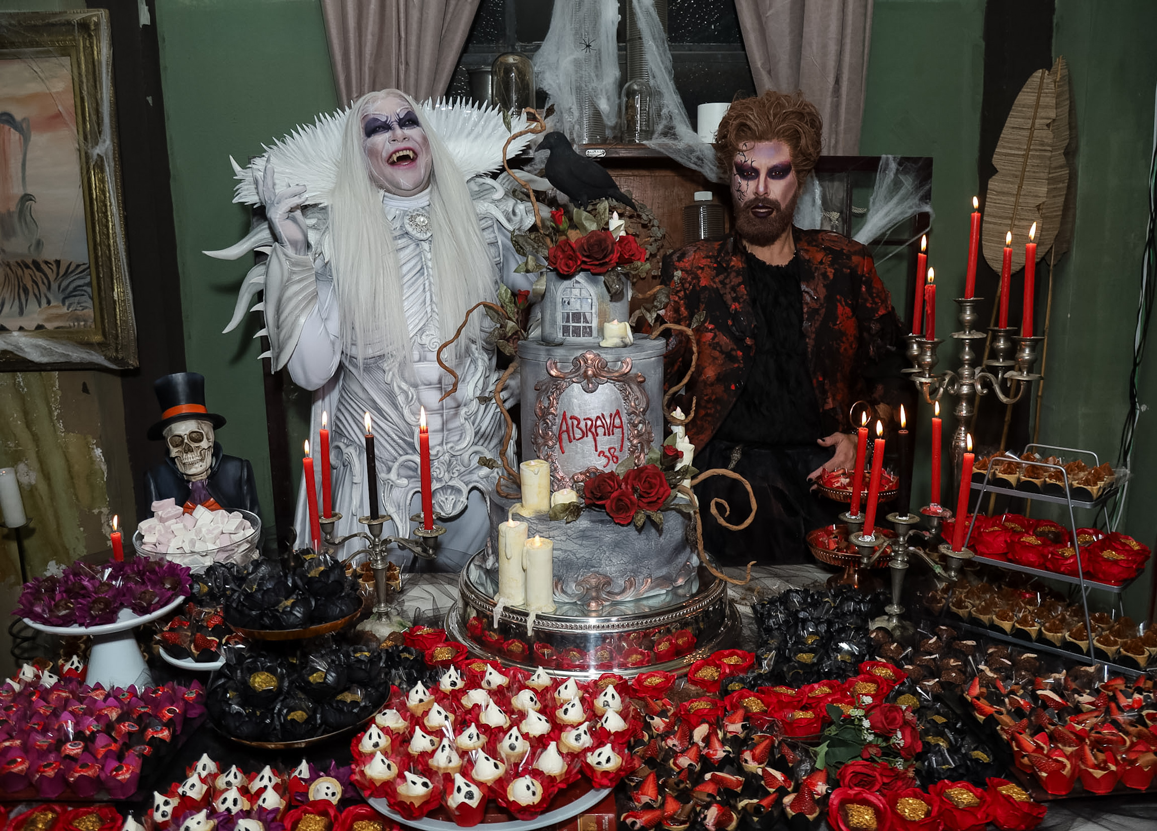 Ao lado do marido Fernando Poli, Tiago recebeu com carinho a mãe Cintia Abravanel e as irmãs Lígia e Vivian, que se divertiram entre os convidados ilustres. Hugo Gloss, Vitor DiCastro, Grag Queen e Ludmillah Anjos também marcaram presença, embarcando no clima sombrio e descontraído que tomou conta da festa.