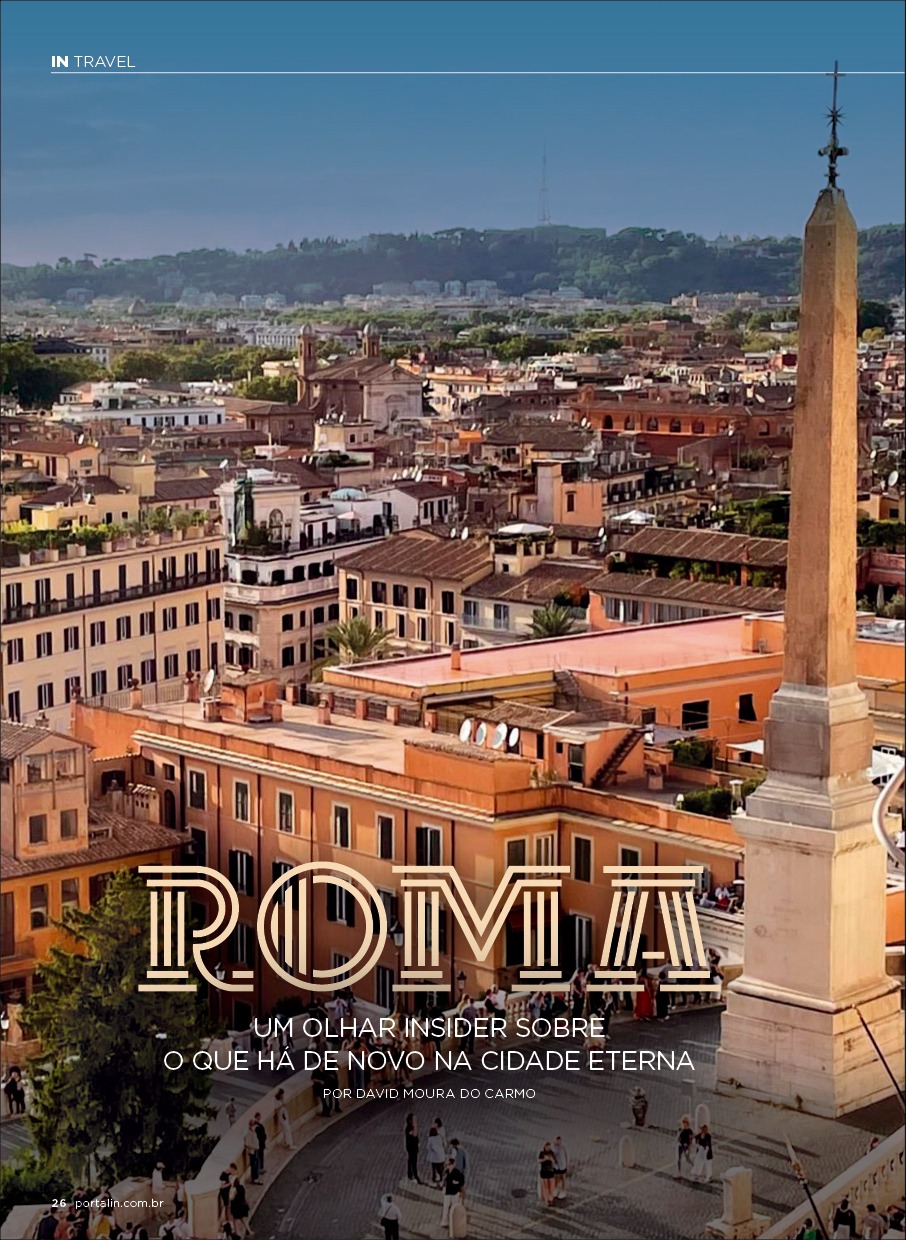 A revista também mergulha no universo das experiências exclusivas. O jetsetter David Moura do Carmo conduz os leitores por um roteiro sofisticado em Roma, revelando uma nova geração de hotéis e palácios históricos que estão sendo reinventados como destinos contemporâneos de hospitalidade de luxo. A cidade eterna vive um momento de renovação que combina tradição, design e experiências sensoriais de alto nível.