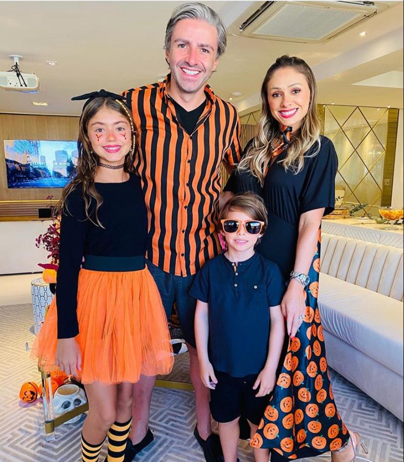 No último sábado, dia 24, o casal e seus filhos armaram uma decoração temática impecável para marcar o momento, com uma mesa cheia de delícias seguindo o mood do horror, com peças da Maison Macêdo.