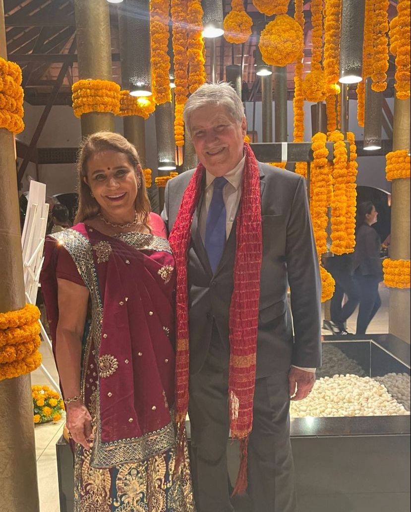 Depois de assistirem a estreia do Brasil na Copa do Mundo do Catar, na semana passada, na companhia do filho Omar, Patrícia e Amarílio Macêdo desembarcaram na Índia para encontrar com o outro filho, Ravi Macêdo, e sua esposa, Bruna.