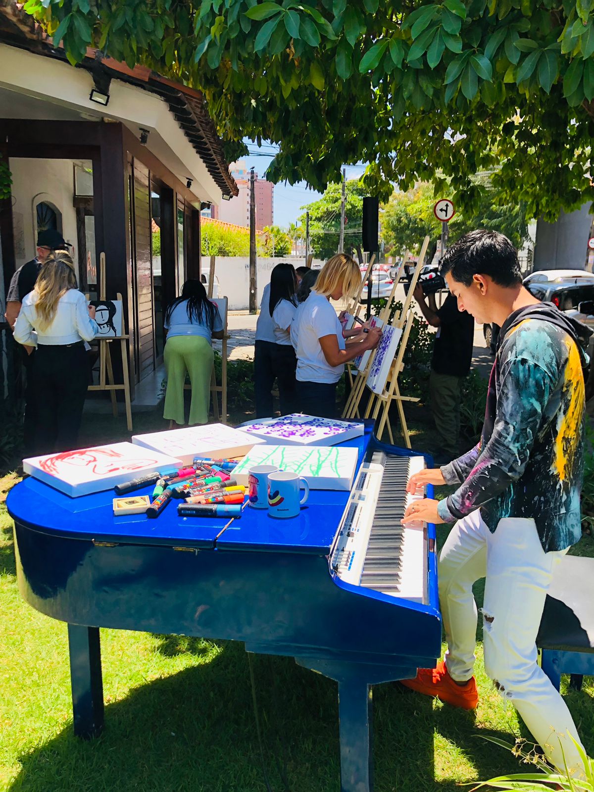 Buscando oferecer oportunidades iguais a todos, o projeto social Cores da Arte apresenta a música e a pintura como base para a transformação de vidas. E, por ter esse objetivo, nesta quinta-feira(22), o projeto reuniu, no Amélie Restô, o músico cearense Paulo Rodrigo Pianista e o Artistas Invisuais para mostrar que é possível criar lindas obras através do toque, do som e do momento que se eternizam em suas pinturas.