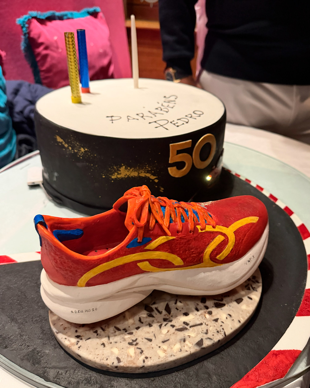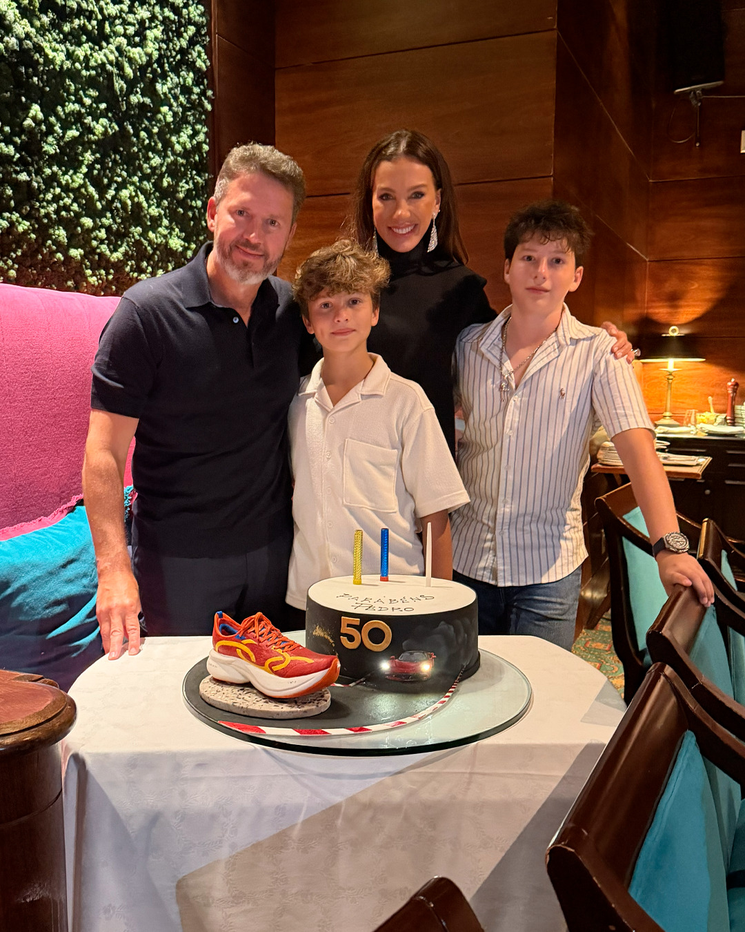 A celebração foi pensada nos detalhes e no significado. Pedro Bartelle brindou a chegada dos 50 anos em uma noite intimista, cercado pela família e por amigos próximos, em clima de afeto, gratidão e reflexão sobre a trajetória construída até aqui. Um dos pontos altos da comemoração foi o bolo, que chamou atenção ao trazer a réplica de um tênis de corrida da Olympikus, símbolo direto de sua vida profissional.
